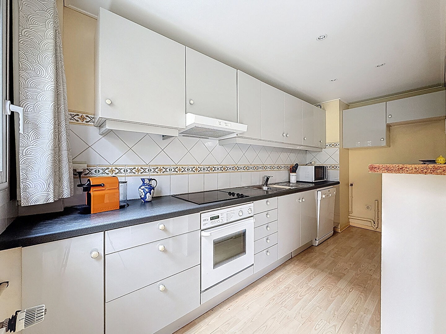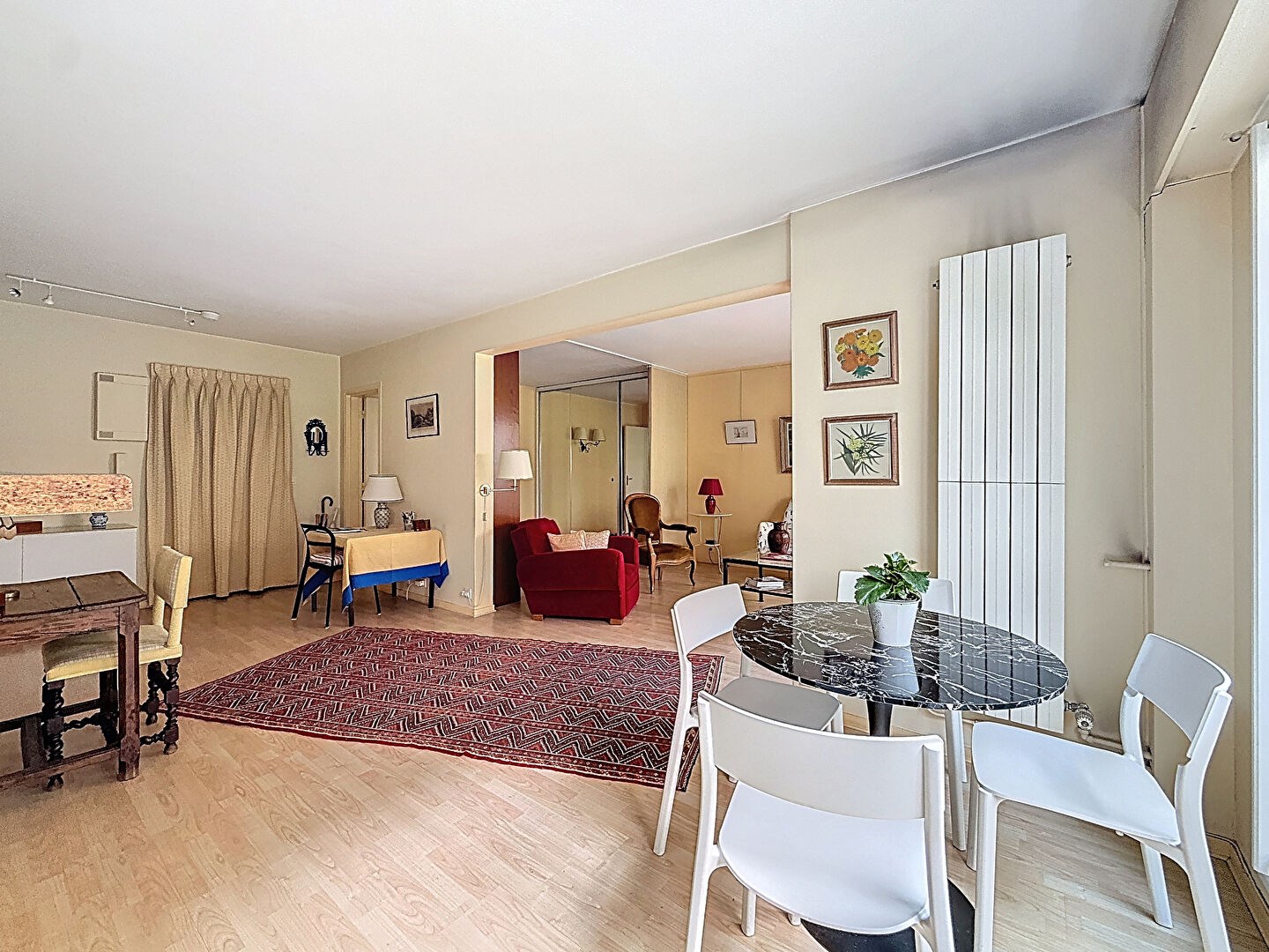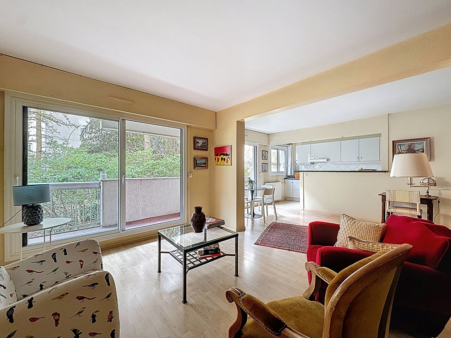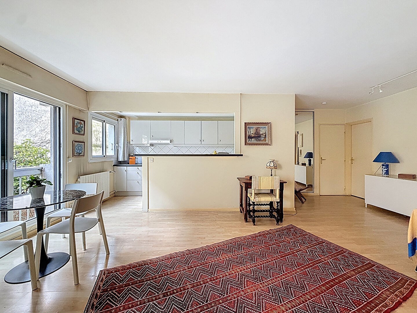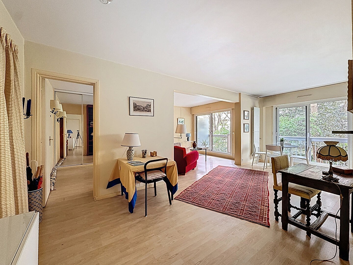 Exposé plein sud, l'appartement profite d'un cadre de vie très agréable, à l'abri des nuisances, avec une vue dégagée sur la verdure de la copropriété.