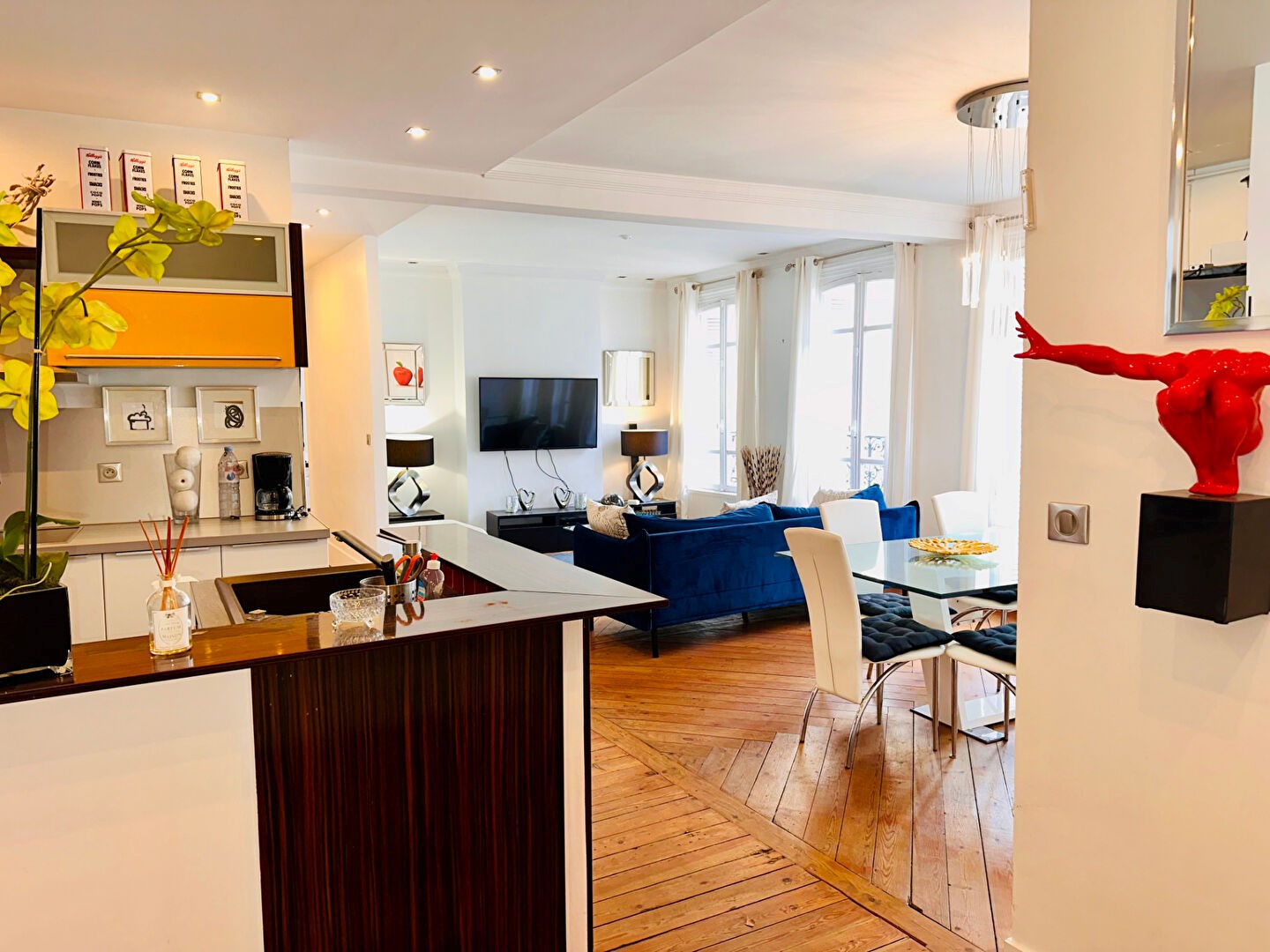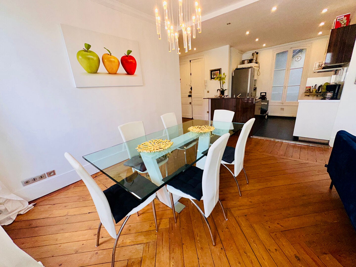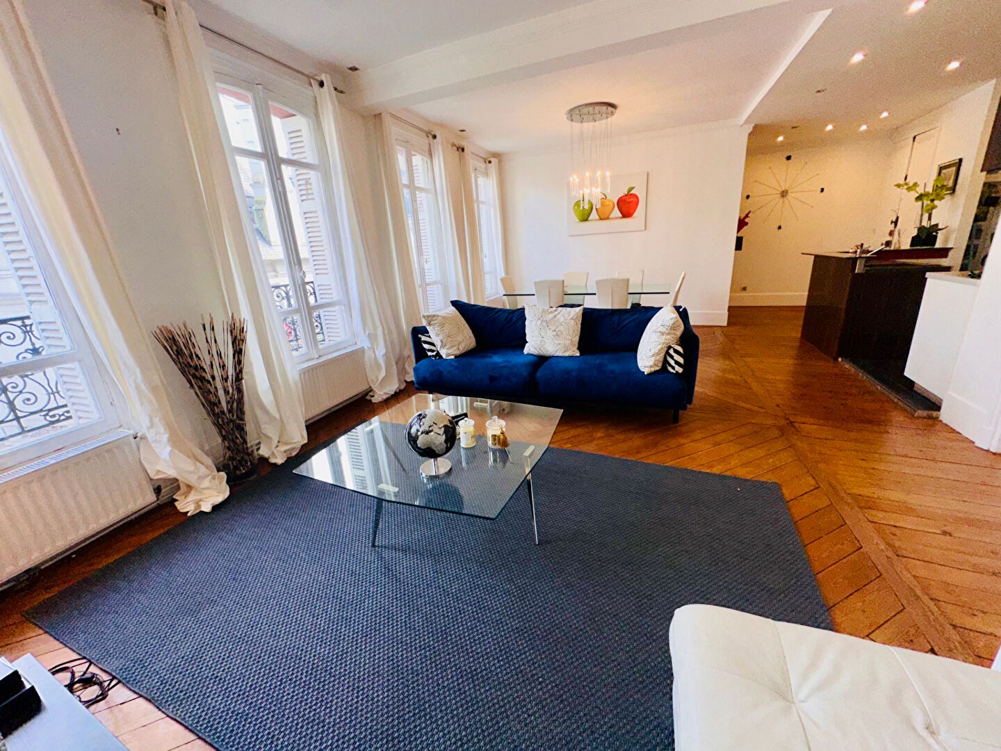 Bel appartement de 100 m2, dans une magnifique résidence de style haussmannien, entrée, double séjour très lumineux, cuisine américaine aménagée, salle de bains, salle de douches, wc séparés avec lave-mains , 3 chambres, placards ; fenêtres dans toutes pièces ; 2 caves.