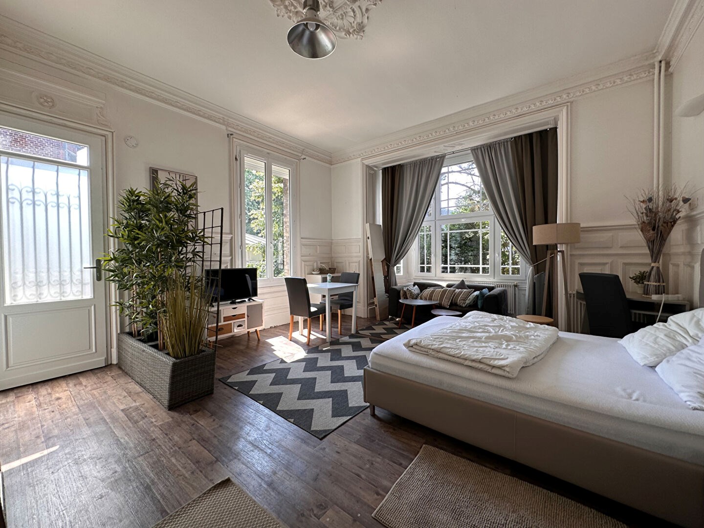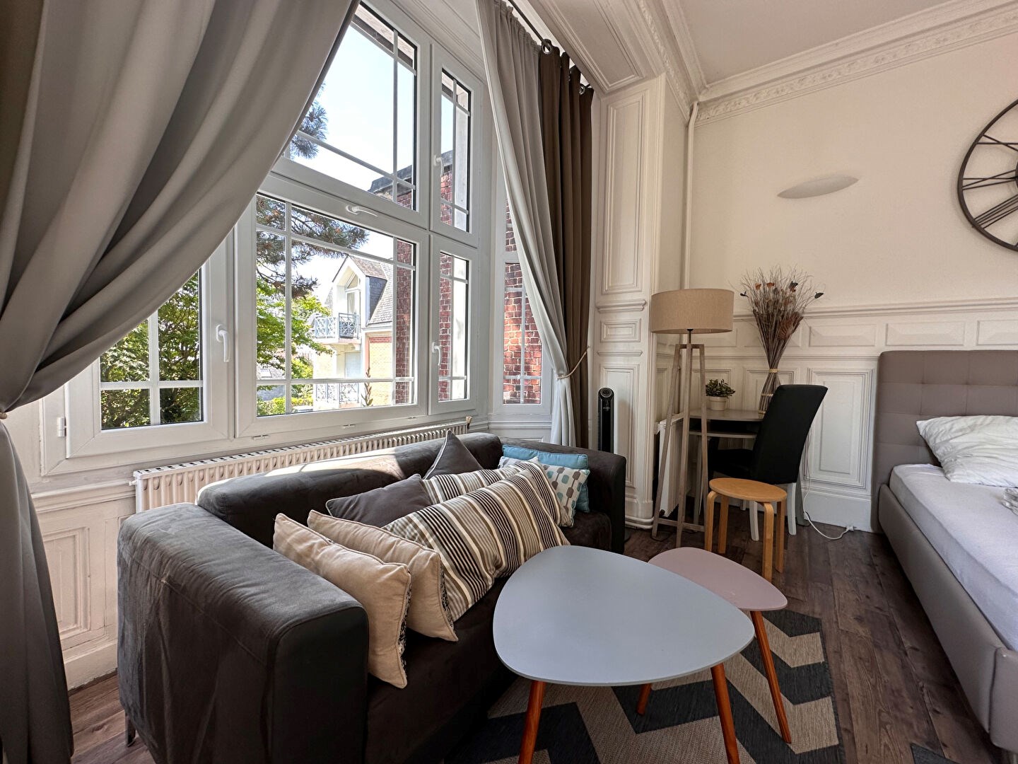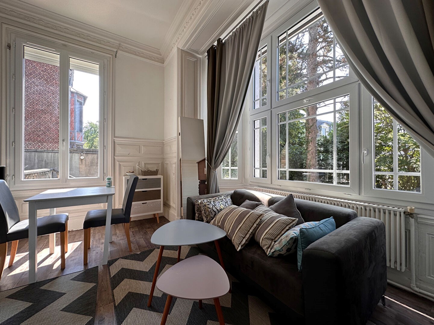 Idéalement situé à deux pas de la gare de Rouen, découvrez ce charmant appartement F1 de 30 m², niché au sein d'une élégante maison bourgeoise divisée en plusieurs logements.