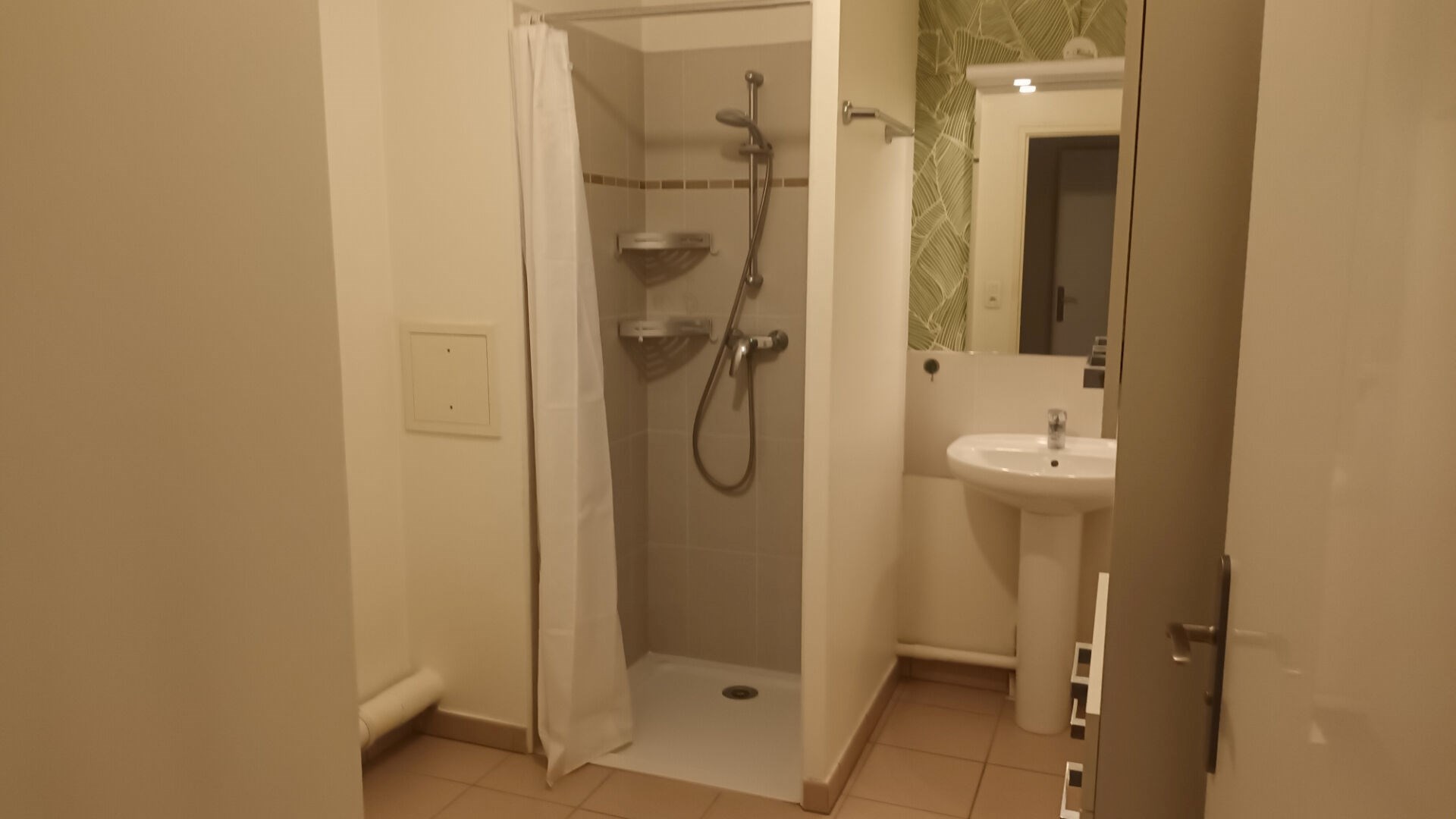 Dans immeuble récent de 2014 avec ascenseur beau 2 pièces situé au deuxième et dernier étage comprenant: entrée avec placard, séjour, cuisine ouverte aménagée, 1 chambre, salle d'eau avec wc.