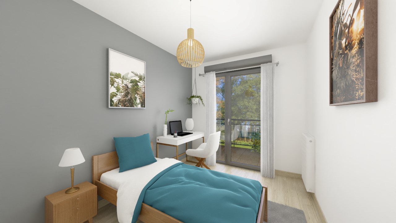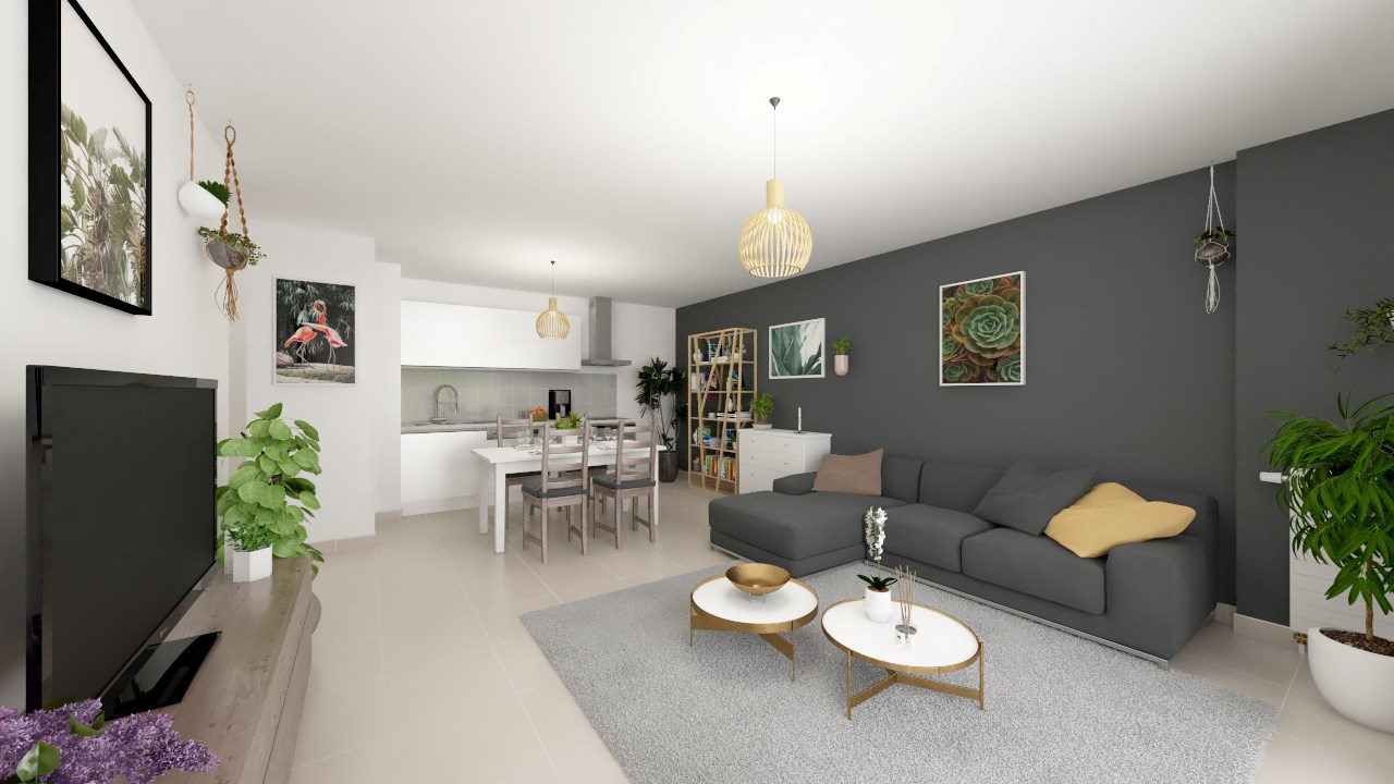 Appartement de type F3 situé au 1er étage avec ascenseur comprenant: entrée avec placard, séjour avec cuisine ouvrant sur balcon, dégagement, 2 chambres dont une ouvrant sur balcon, salle de bains, wc, balcon de 8m²