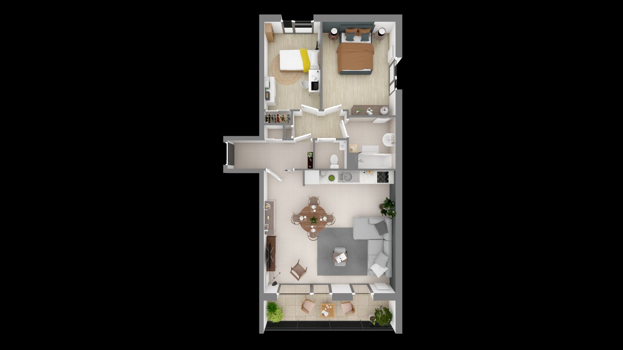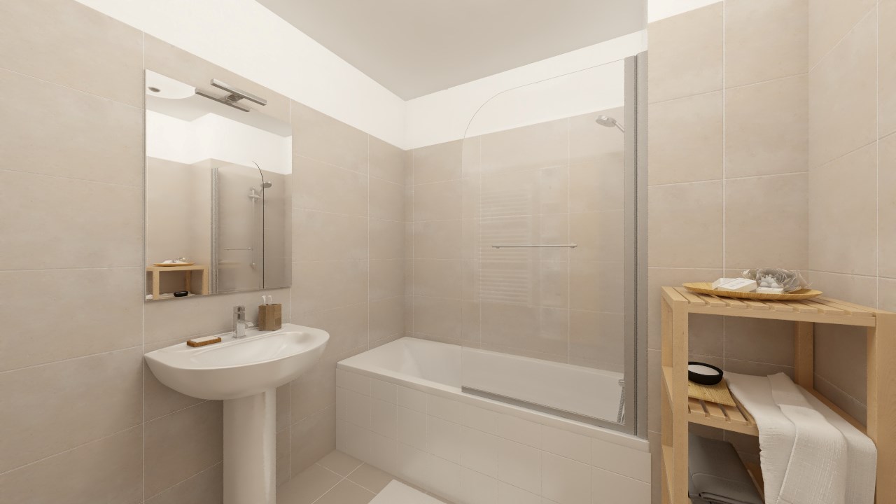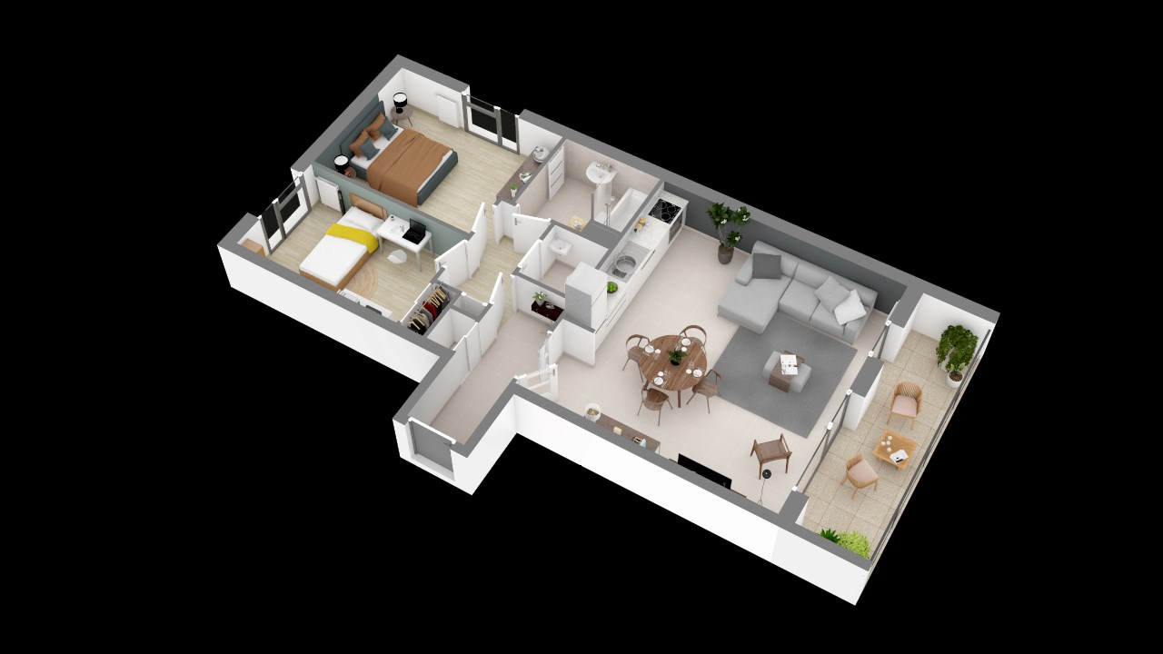 Appartement de type F3 situé au 2ème étage avec ascenseur comprenant: entrée avec placard, séjour avec cuisine ouvrant sur balcon, dégagement, 2 chambres, salle de bains, wc, balcon 8m².