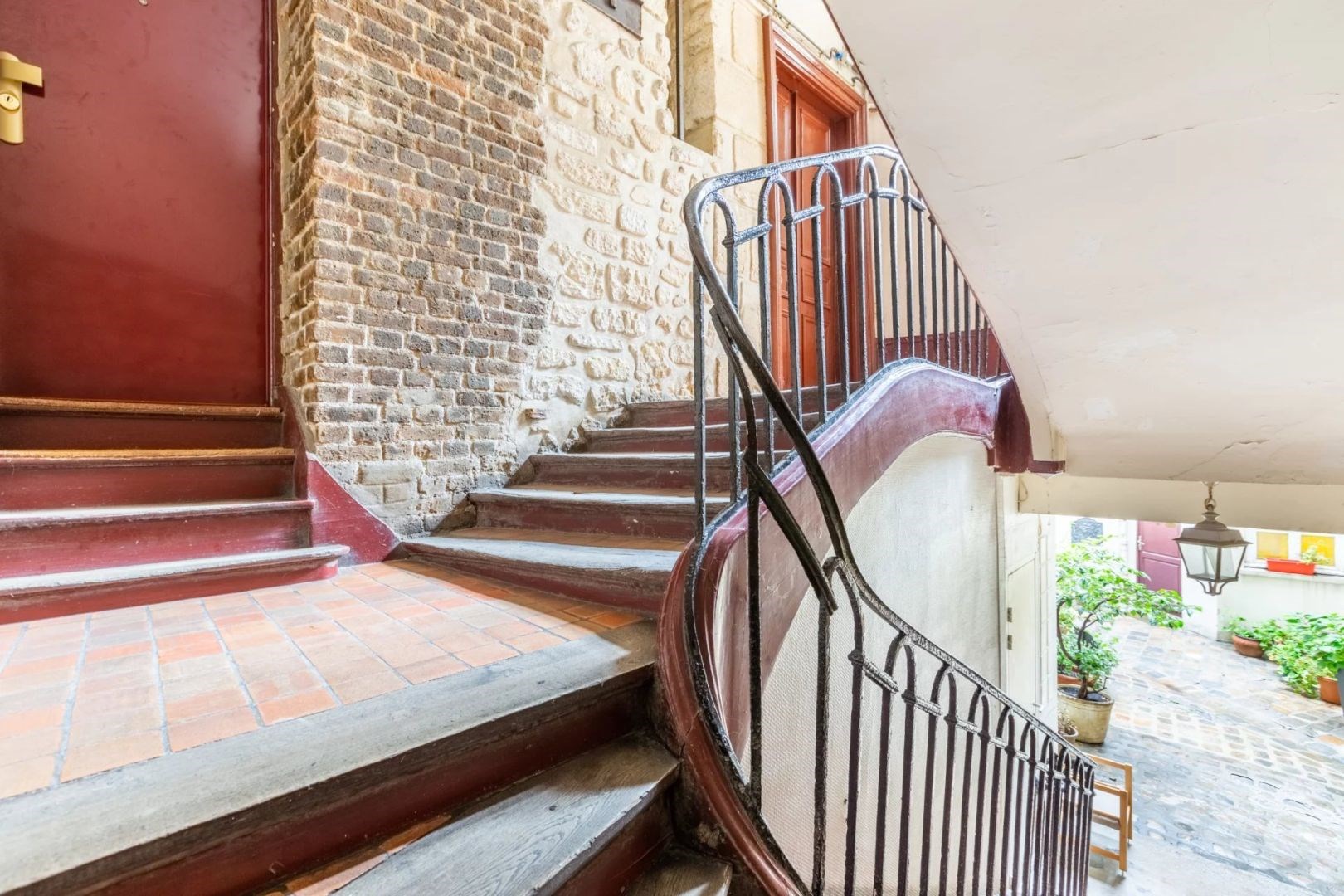 Saint-Sulpice, un parfait pied à terre avec de beaux volumes, situé dans une des rues emblématiques de Saint-Germain-des-Prés, comprenant: une entrée, un séjour avec mezzanine, une cuisine, une chambre et une salle de bains avec toilettes. Appartement au calme d'une surface de 76 m² au sol et 63. 90 m² Loi Carrez avec beaucoup de cachet. Très belle hauteur sous plafond et poutres apparentes. Situé au 1er étage par escalier dans un immeuble du XVII -ème siècle. Travaux à prévoir. Une cave complète ce bien rare. (4.53 % honoraires TTC à la charge de l'acquéreur.)