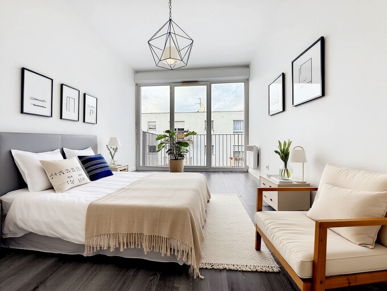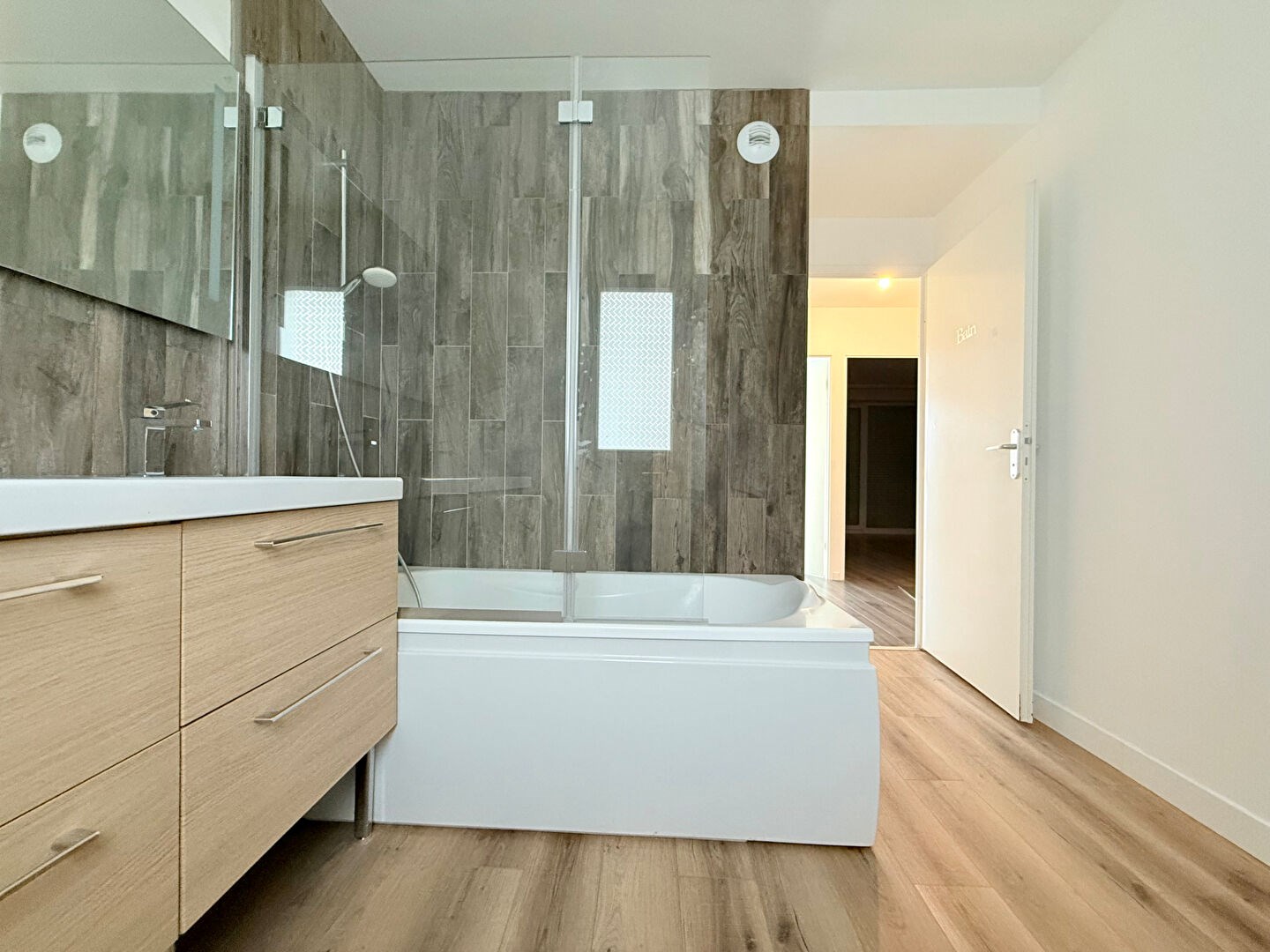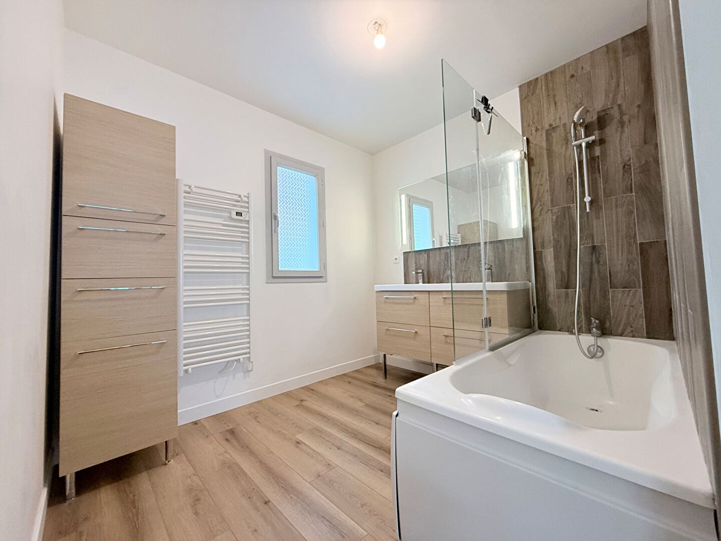 A l'étage, un palier dessert l'ensemble de l'espace nuit composé de trois chambres, dont deux bénéficient d'un accès direct à un second balcon, parfait pour profiter d'un extérieur supplémentaire. Vous trouverez également un WC indépendant ainsi qu'une salle de bains.