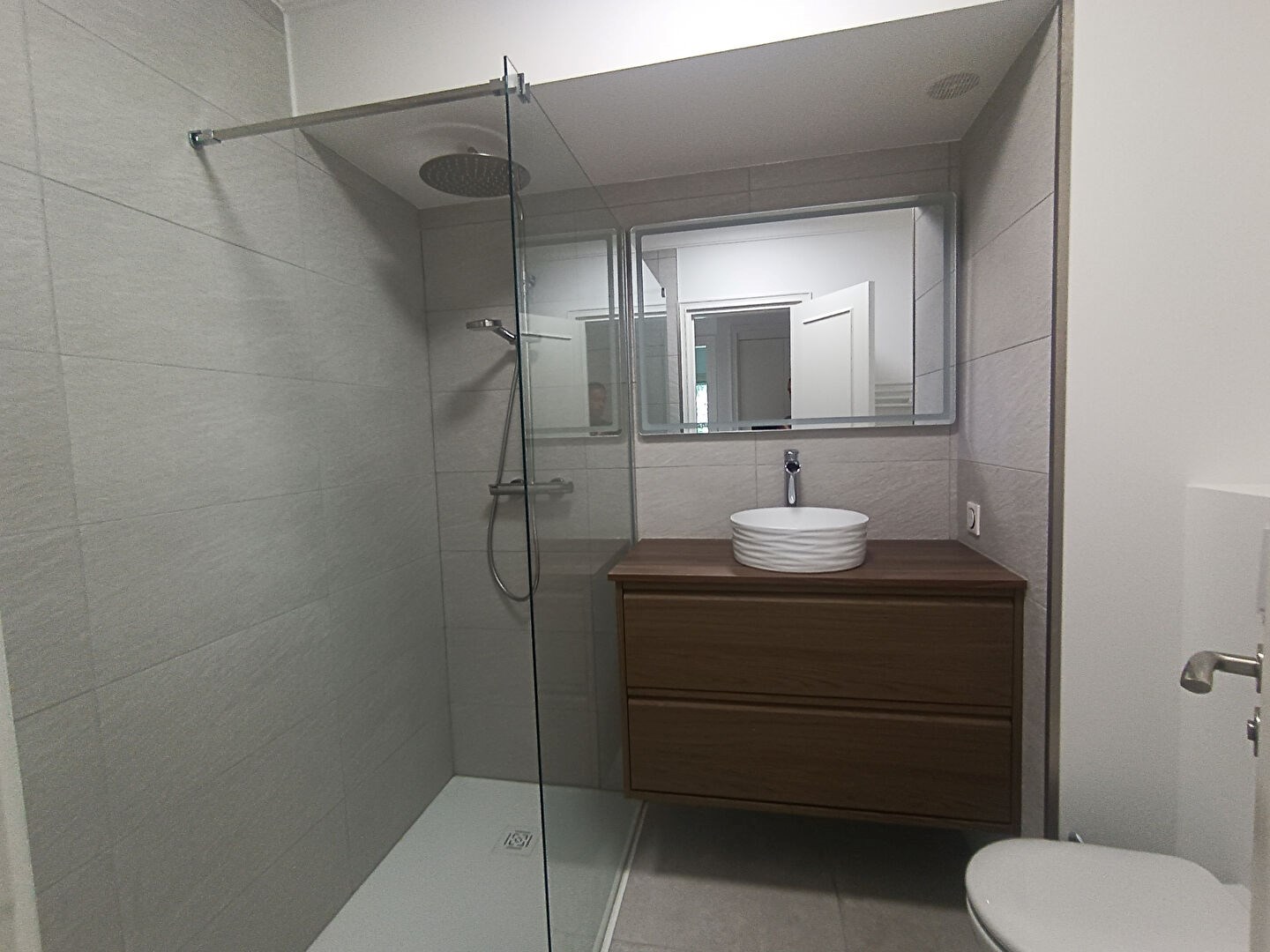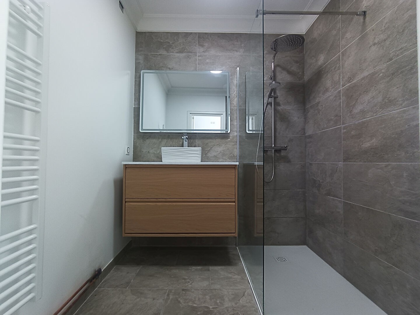 L'appartement est composé d'un hall d'entrée, d'une pièce principale d'environ 30m², de deux chambres, de deux salles d'eau avec WC, d'une cuisine indépendante aménagée et équipée, d'un WC indépendant et de nombreux rangements.