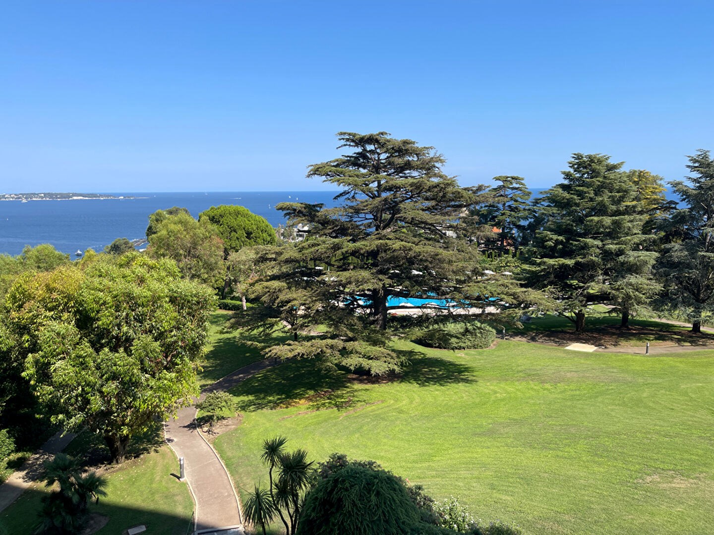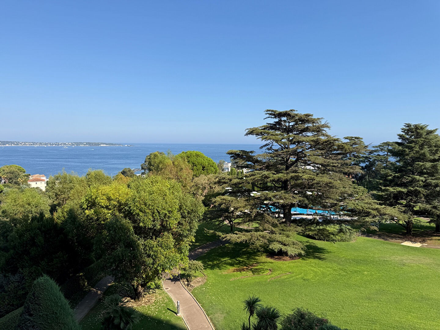 Dans une magnifique copropriété sécurisée de très grand standing disposant d'un grand parc arboré avec piscine, tennis et gardien , un appartement de 4 pièces avec superbe vue sur le Cap d'Antibes et la Mer.