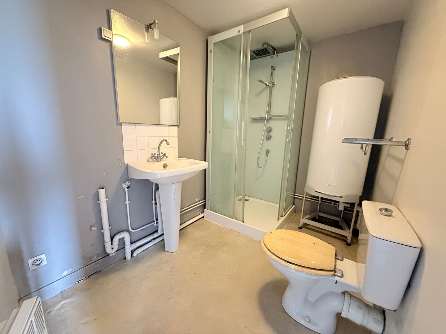 L'appartement se compose d'un séjour lumineux avec cuisine ouverte, d'une chambre, d'un bureau pouvant servir de chambre d'appoint ou d'espace de travail, ainsi que d'une salle de douche avec WC.