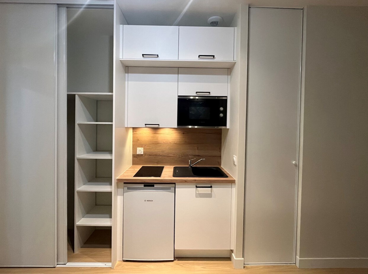 Agréable studio situé au rez-de-chaussée d'une superficie de 17.70m² entièrement rénové se composant d'une séjour donnant sur une cuisine américaine aménagée et équipée, une salle de douche ainsi qu'un cave.