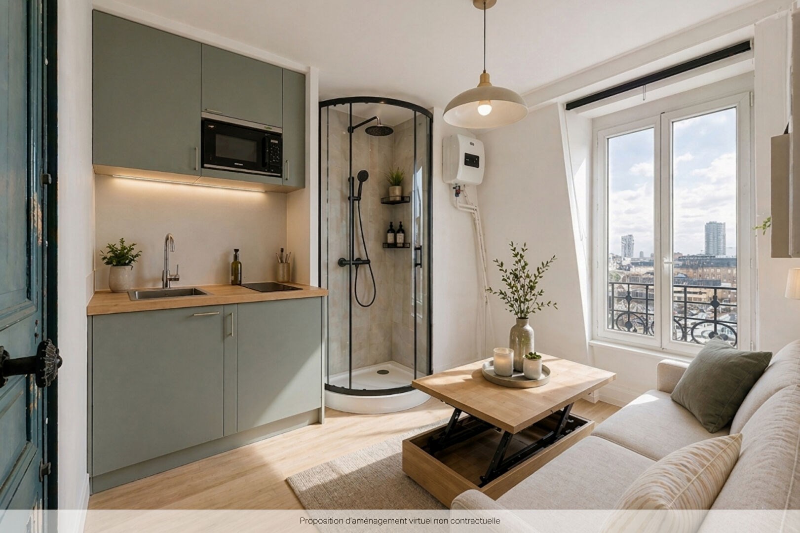 Le lot se compose d'une seule pièce avec point d'eau. Possibilité d'installer une douche et un coin cuisine. Absence de WC privatifs, avec un WC commun sur le palier et un droit d'usage.