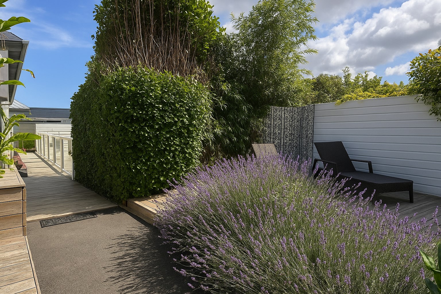 Edifiée sur un terrain de 1500m2, elle se distingue par son architecture ouverte sur l'extérieur, ses grandes baies vitrées et ses multiples terrasses qui offrent une vue panoramique sur la nature environnante, dont une à l'abri des regards avec sa petite piscine chauffée.