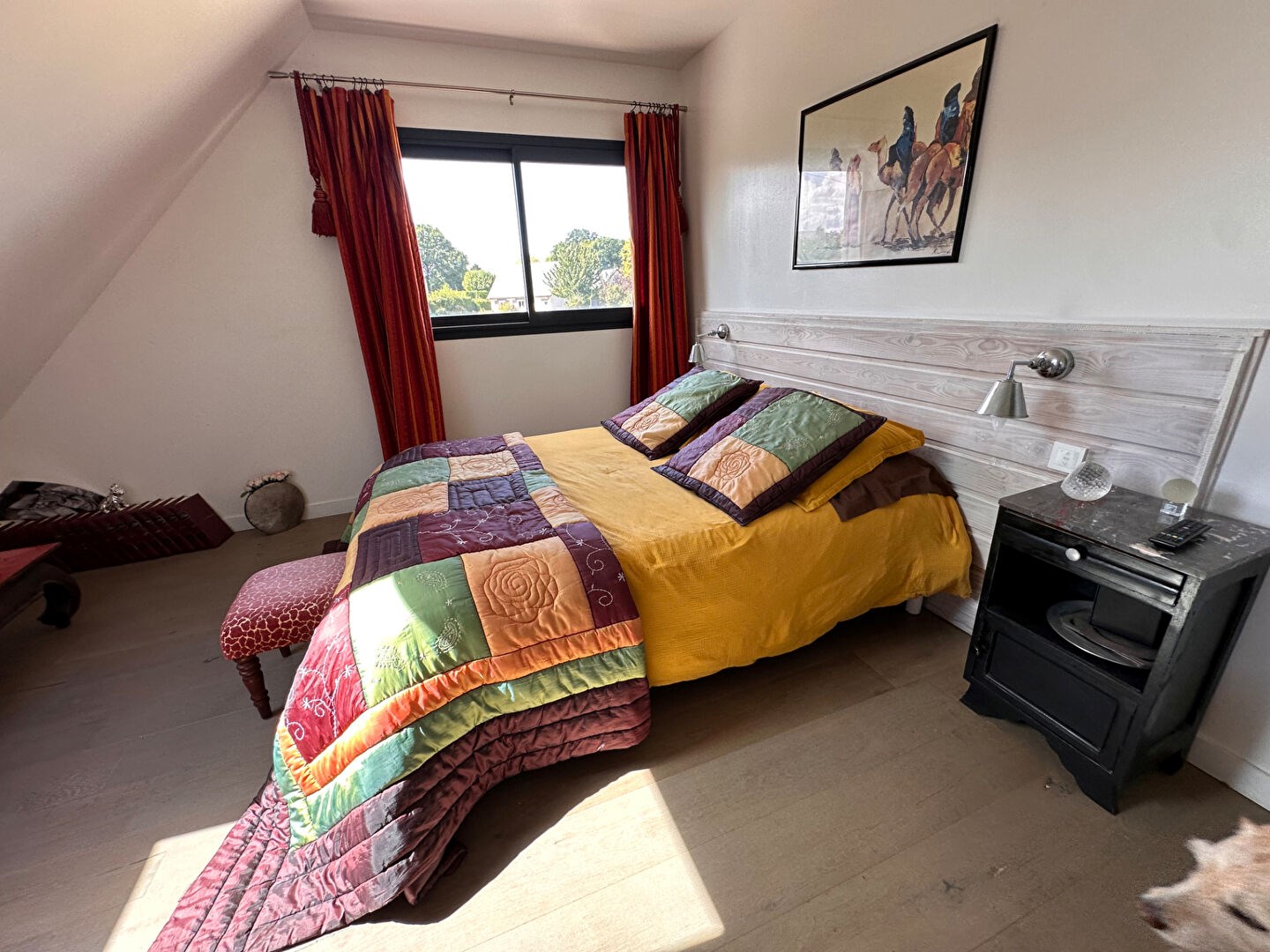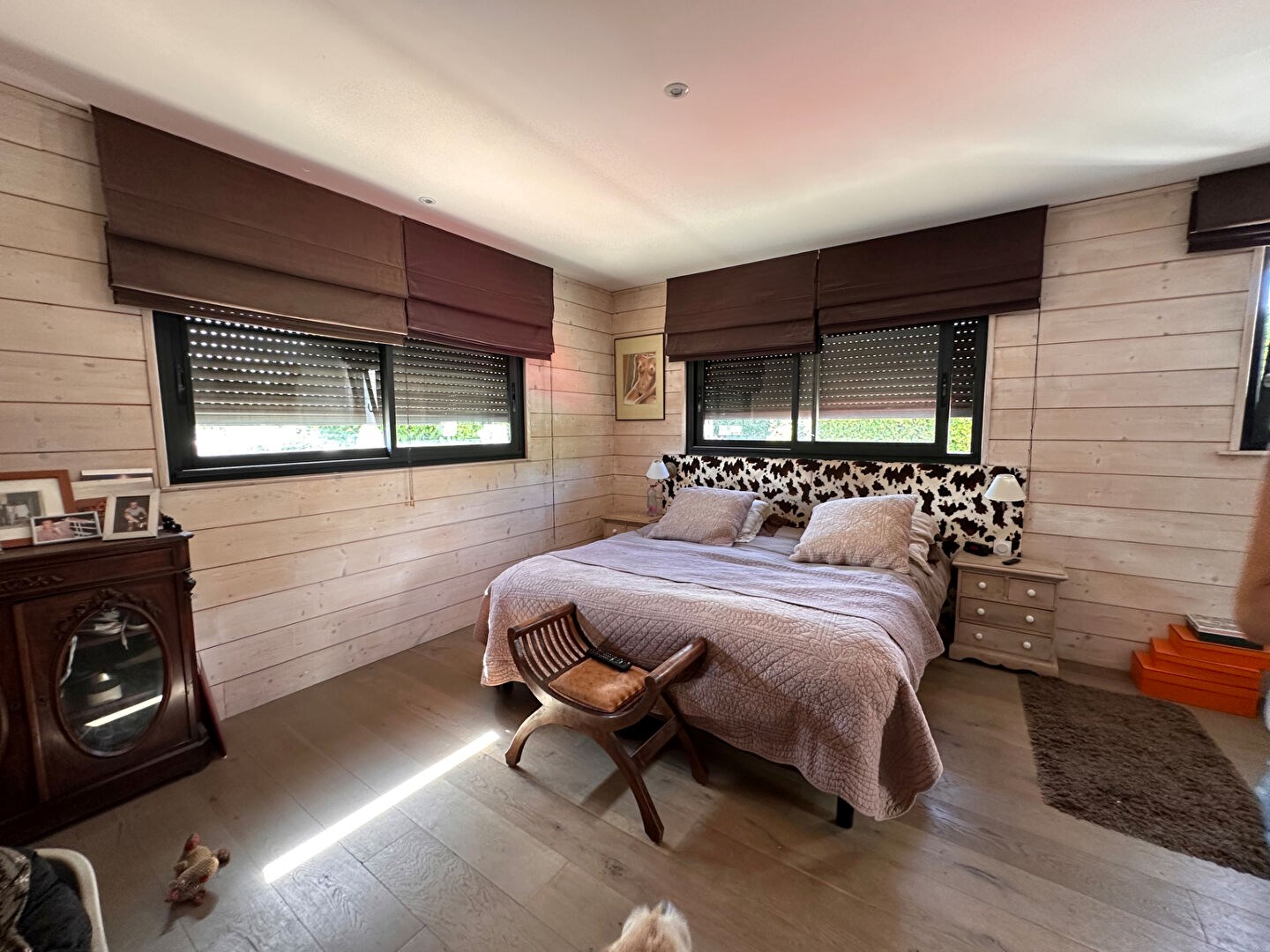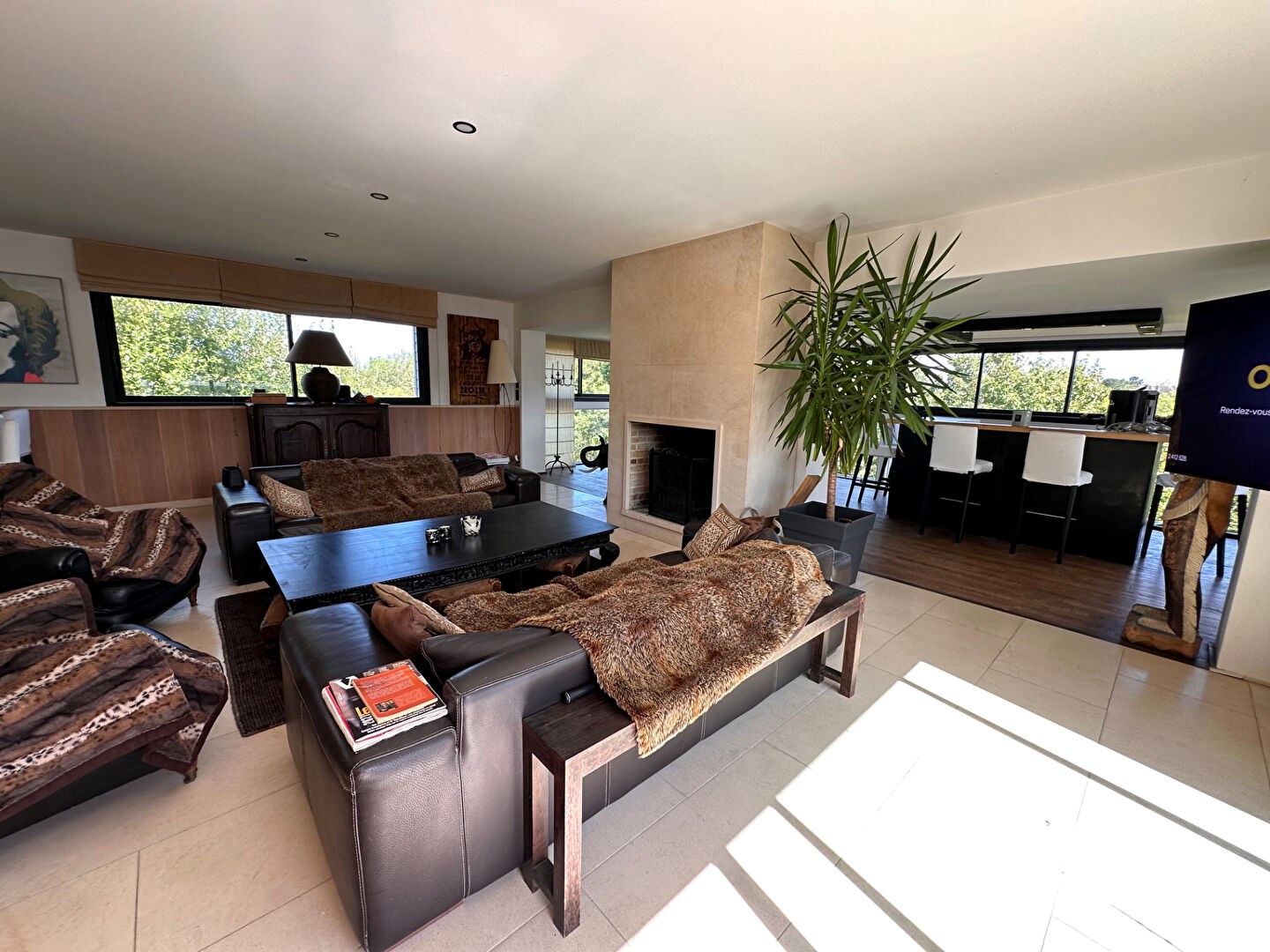 Le séjour spacieux bénéficie d'une cheminée centrale et d'une luminosité remarquable tout au long de la journée. L'espace de vie s'ouvre sur une belle terrasse. Une grande cuisine américaine équipée et très fonctionnelle, 5 suites parentales dont une au rez-de-chaussée, un bureau, un appartement indépendant de 40 m2. Grand sous-sol, cave à vins, buanderie, salle de jeux, garage, parking.