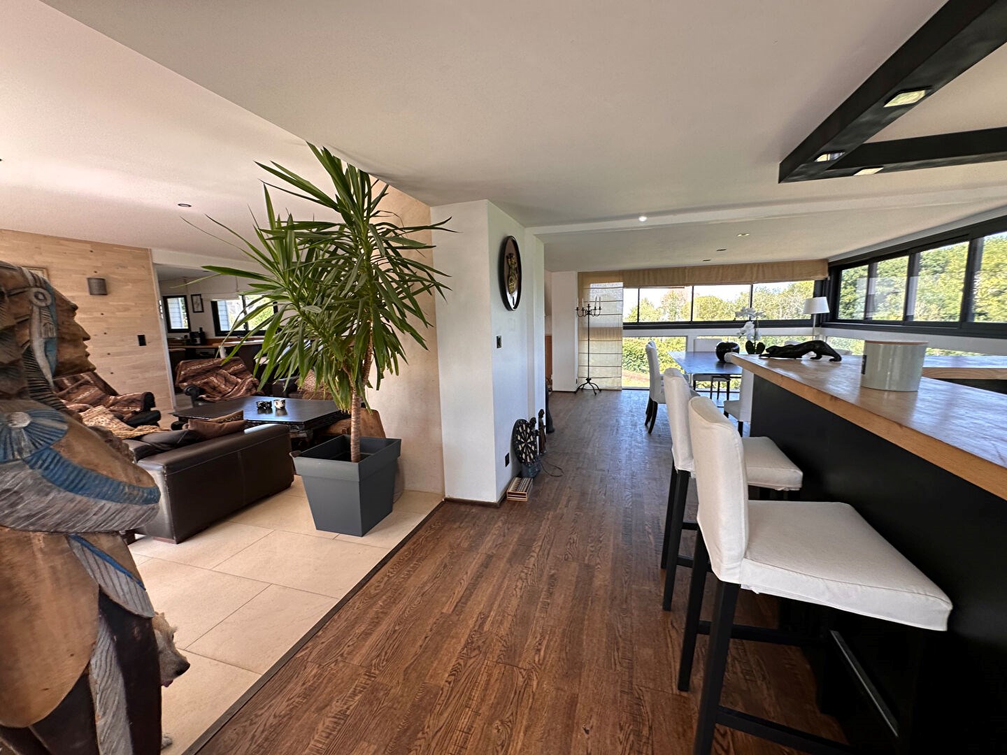 Situé dans un environnement verdoyant et paisible, cette superbe maison contemporaine de 260 m2 habitables offre un cadre de vie exceptionnel, alliant modernité, lumière et nature.