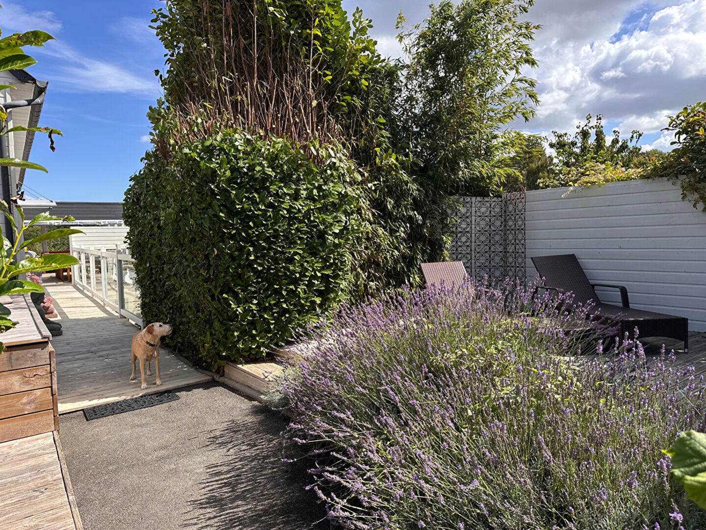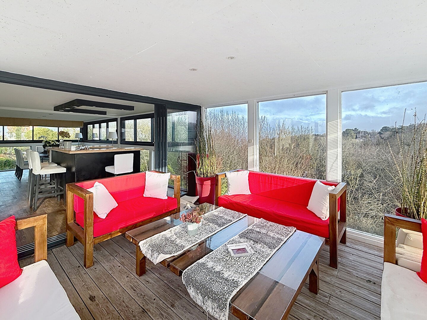 Edifiée sur un terrain de 1500m2, elle se distingue par son architecture ouverte sur l'extérieur, ses grandes baies vitrées et ses multiples terrasses qui offrent une vue panoramique sur la nature environnante, dont une à l'abri des regards avec sa petite piscine chauffée.