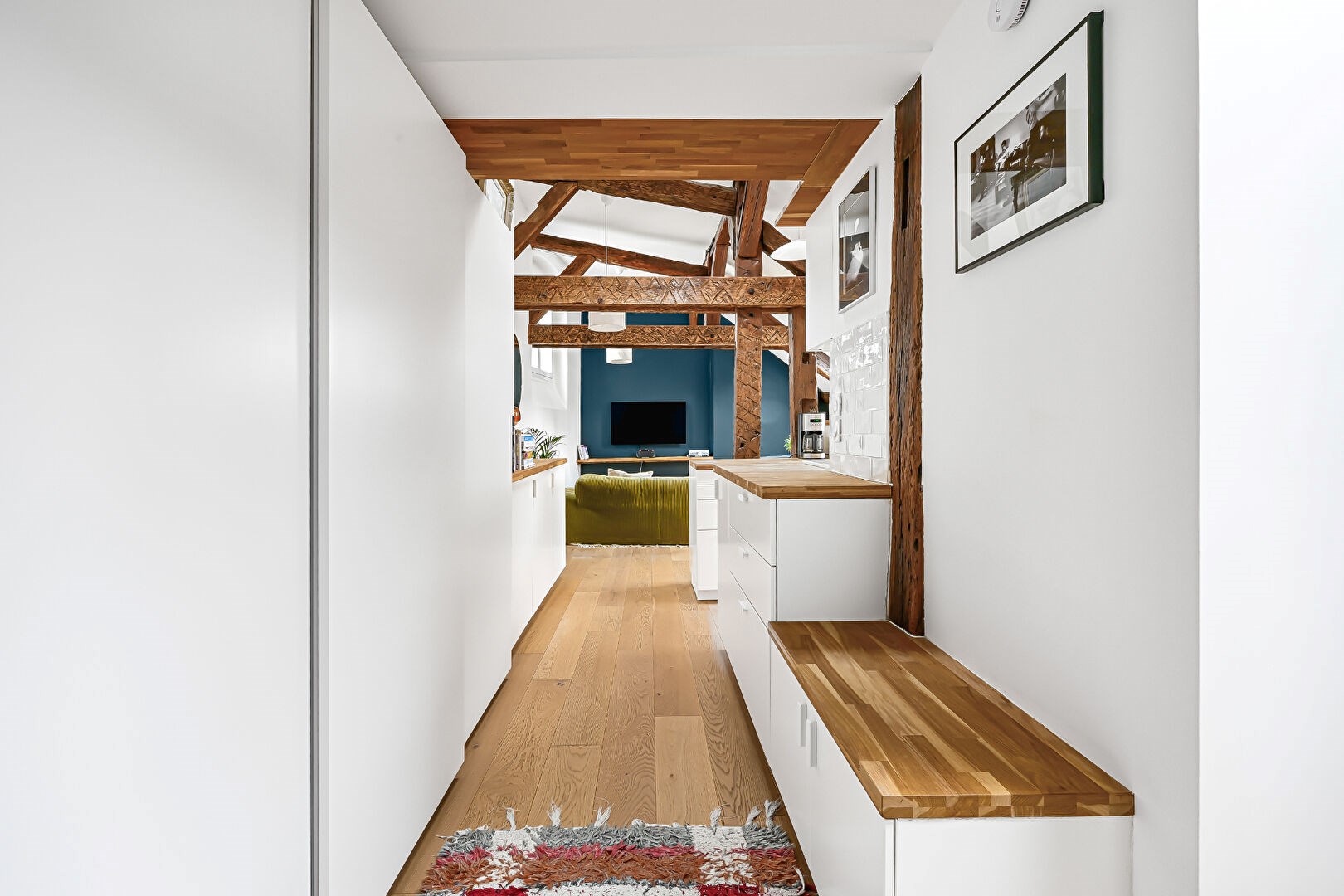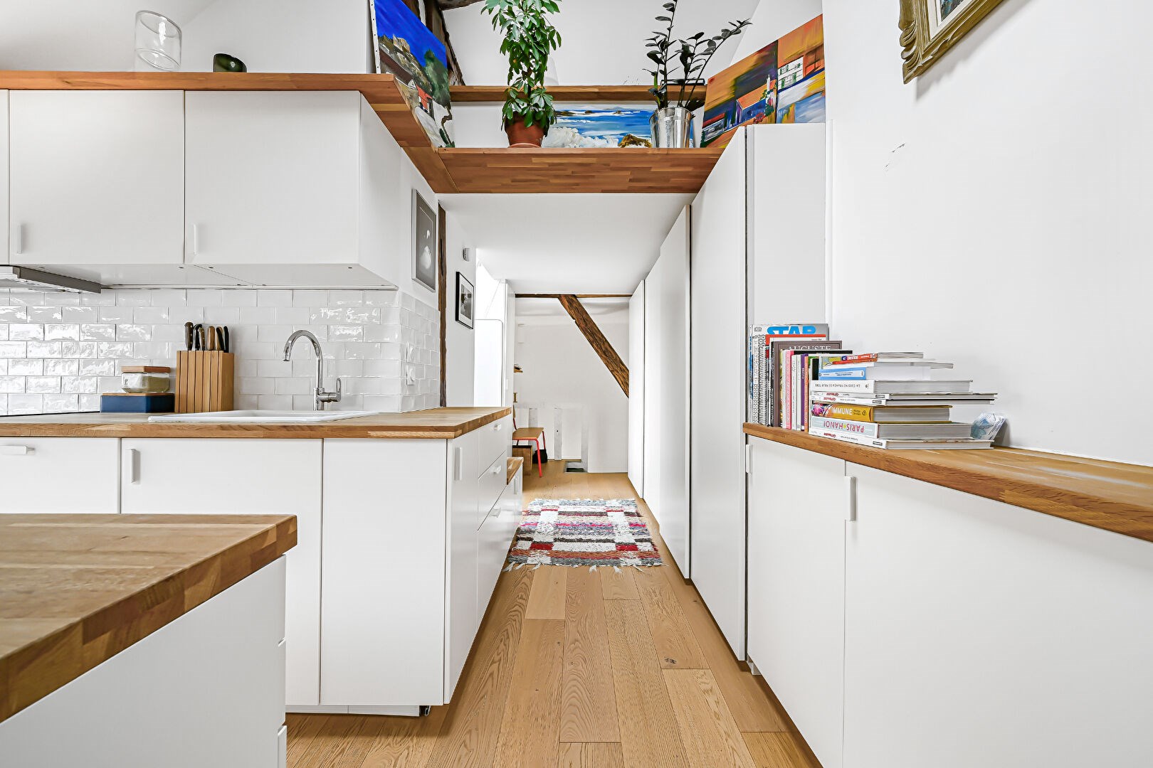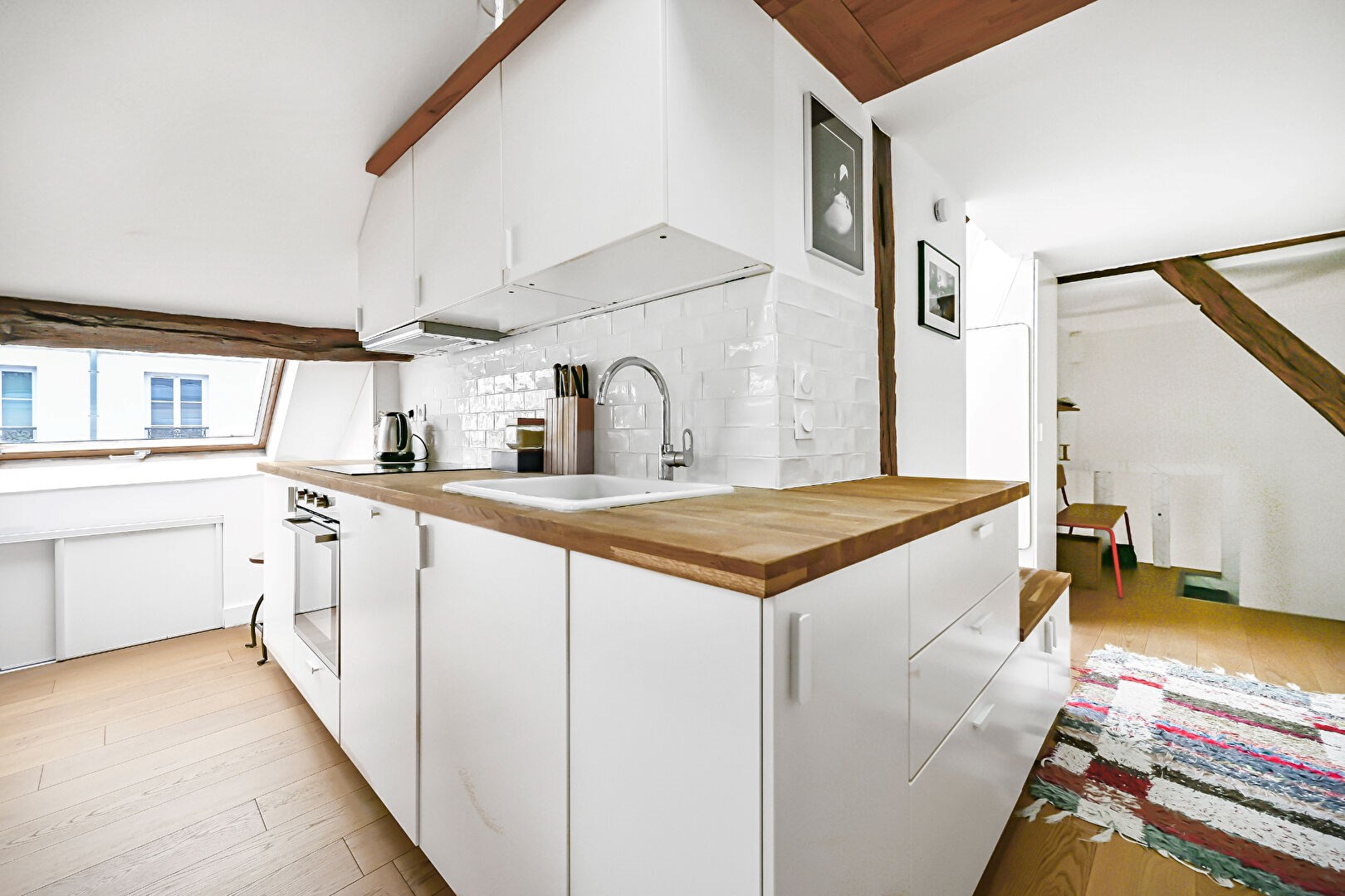 Entre le Panthéon et le Jardin des Plante - Au dernier étage, un appartement baigné de lumière, rénové par architecte. Il comprend : entrée, séjour avec cuisine ouverte, chambre en mezzanine, salle de bains, water-closets séparés et de nombreux rangements.