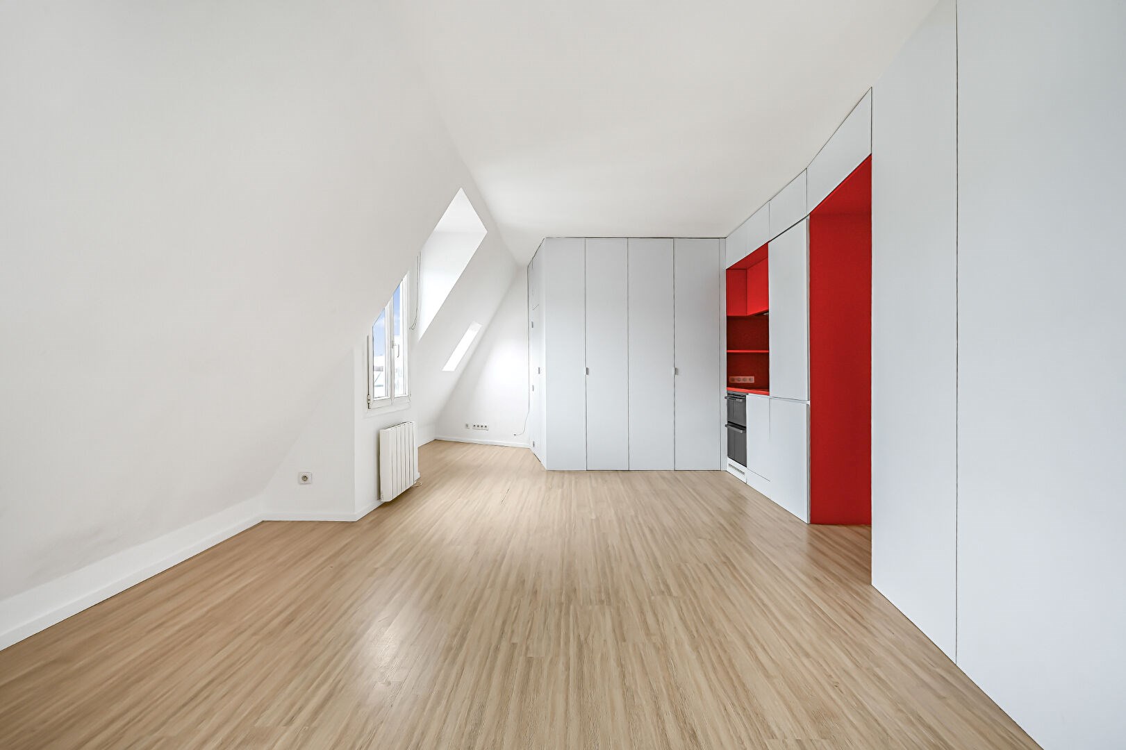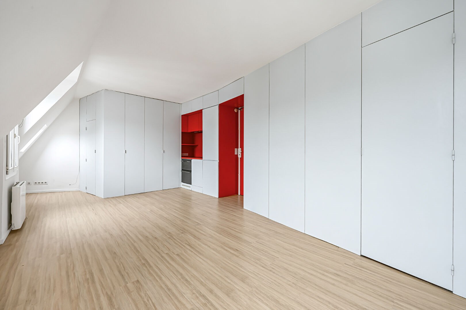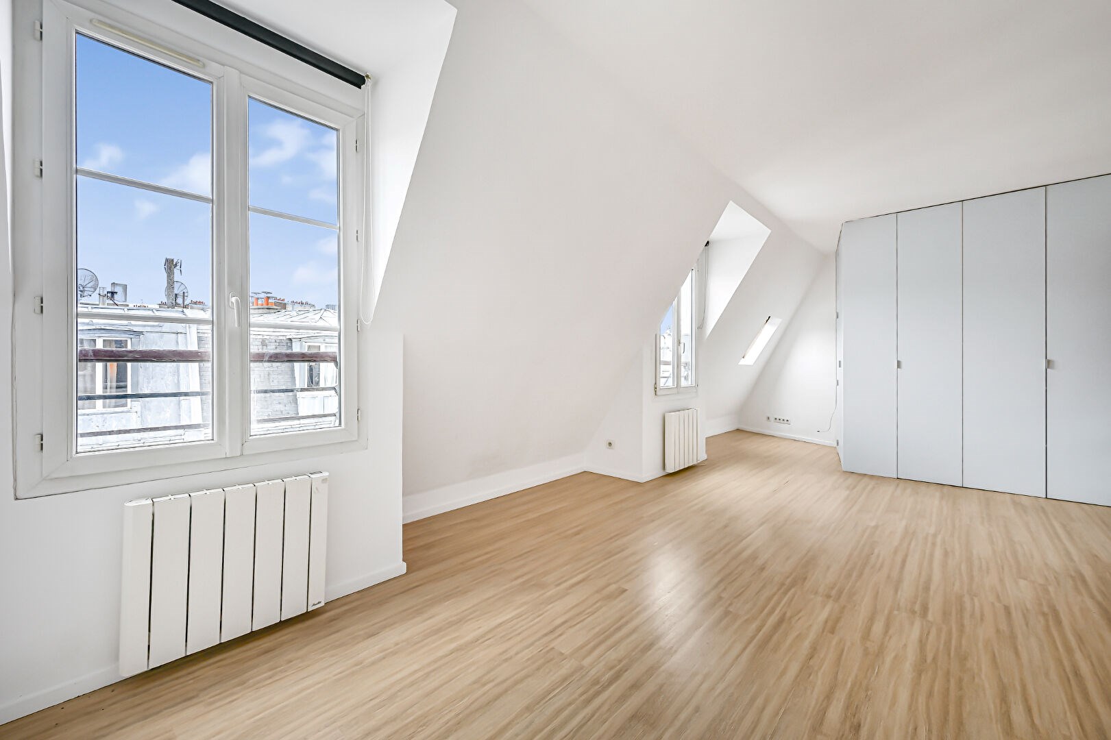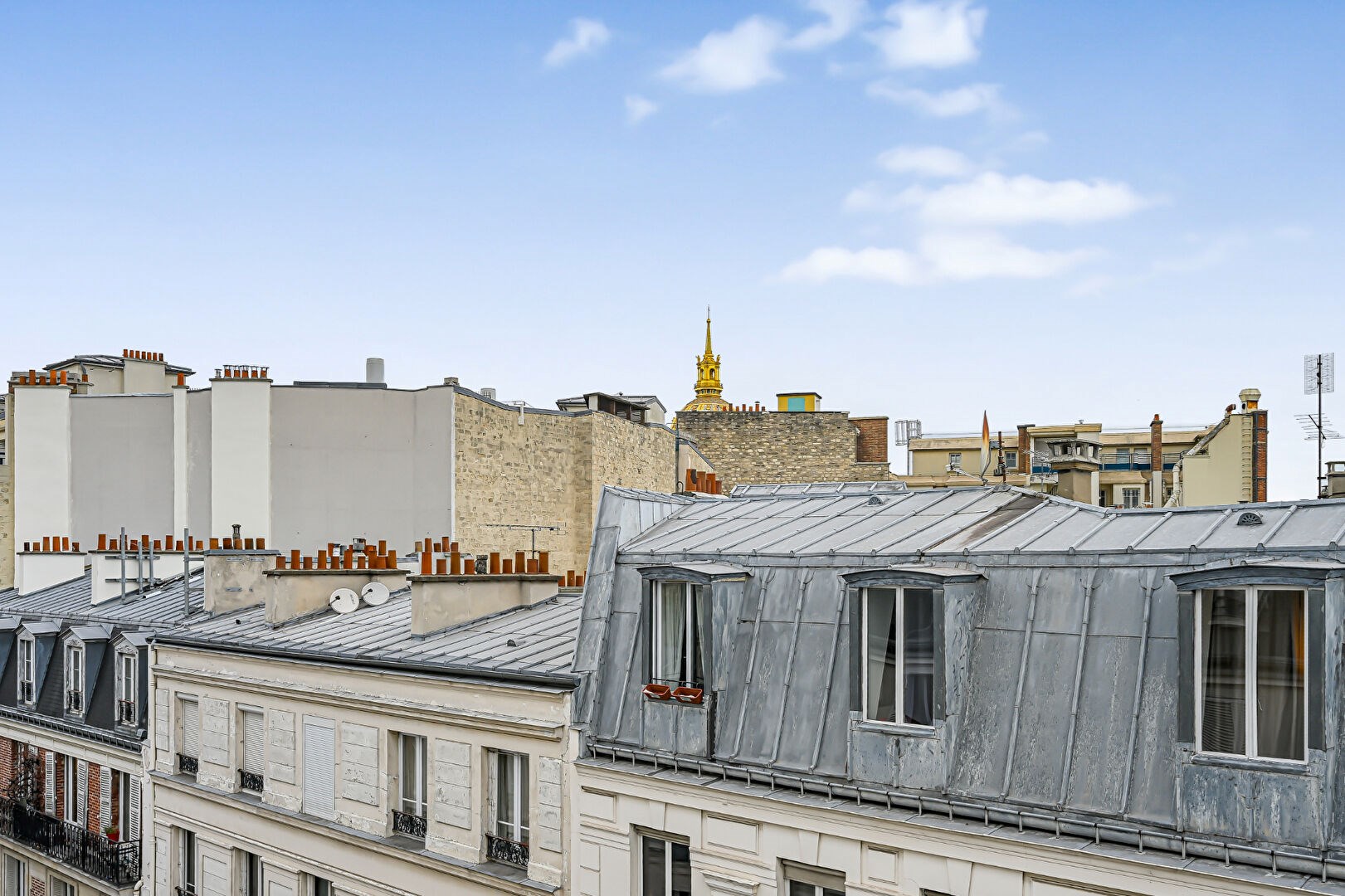 En très bon état, l'appartement bénéficie d'une vue dégagée sur les toits et le Dôme des Invalides,. Nombreux rangements.