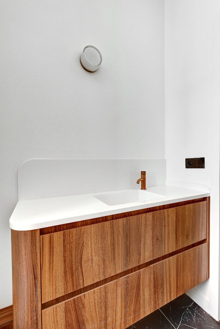Entièrement repensé par un architecte avec prestations haut de gamme et charme de l'ancien: parquet, moulures et cheminée.