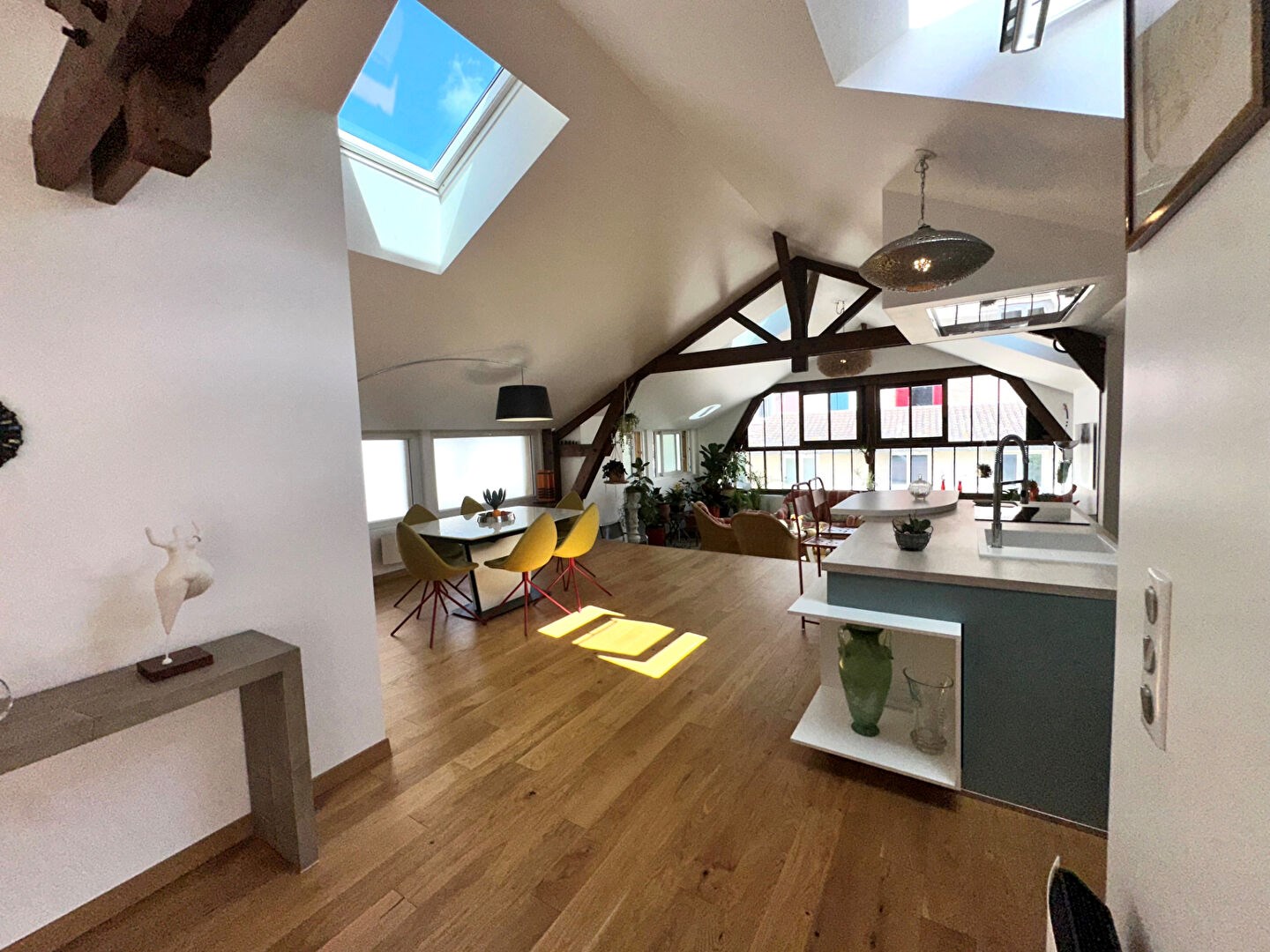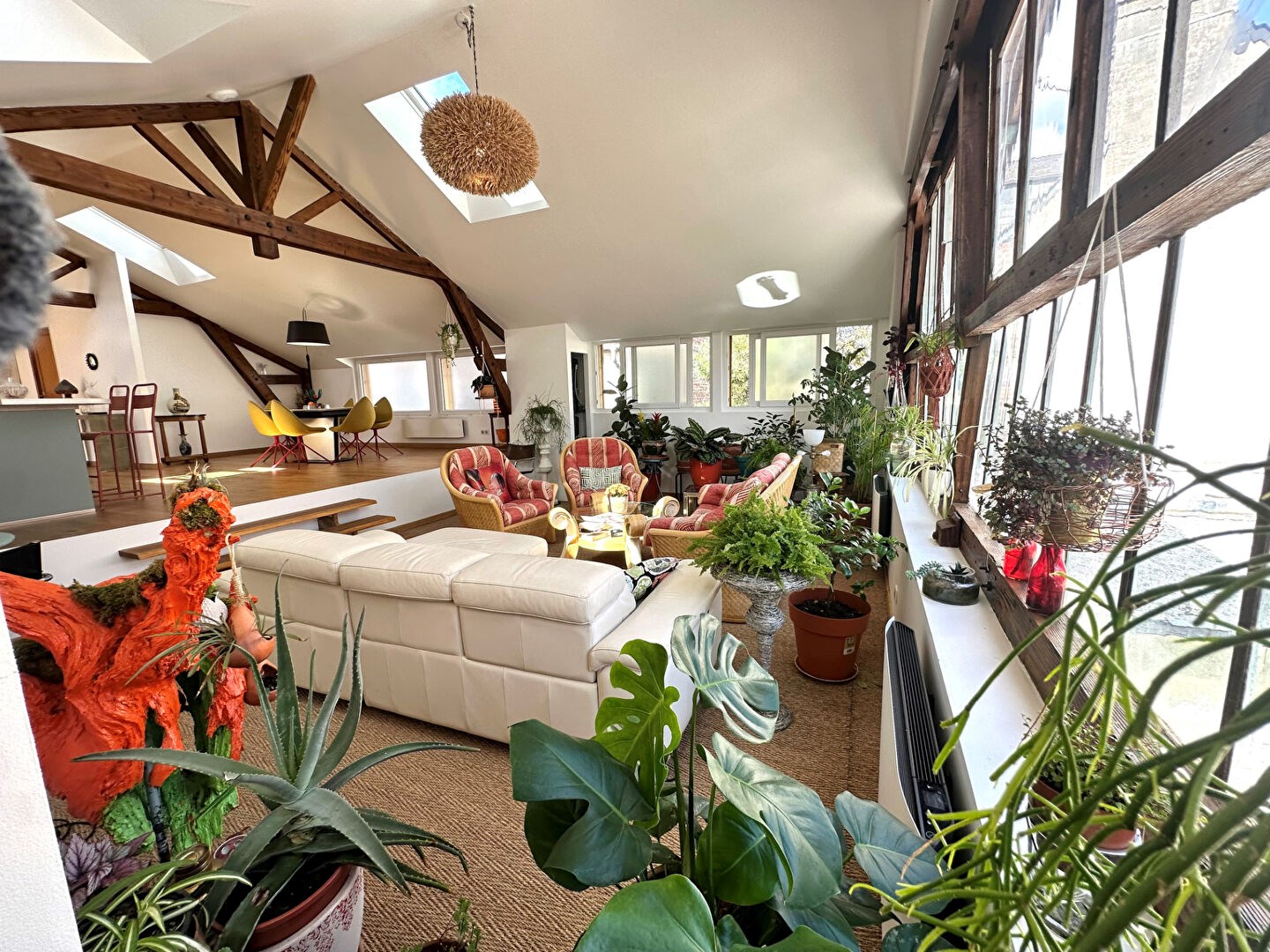 Au rez-de-chaussée, deux grandes pièces pouvant accueillir une activité commerciale ou être repensé en pièces de vie. A l'étage, découvrez un magnifique appartement-loft de 109 m2 aux volumes impressionnants : belles hauteurs sous plafond, poutres apparentes, grandes ouvertures façon jardin d'hiver qui baignent l'espace de lumière. Le tout à proximité immédiate des commerces et de toutes commodités. Un bien coup de coeur pour les amateurs d'architecture atypique et de liberté d'aménagement. Vendu avec deux places de parking.