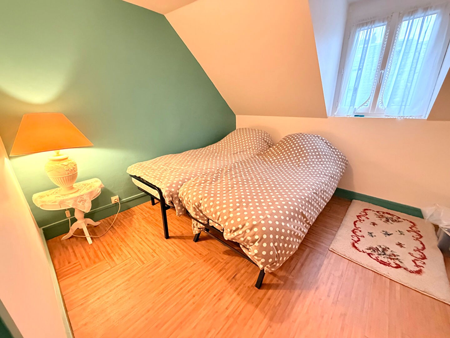 Séjour, cuisine aménagée ouverte, wc, 1er étage : une grande chambre avec possibilité salle de bains, wc (comme à l'origine), 2ème étage : une chambre, salle de bains.