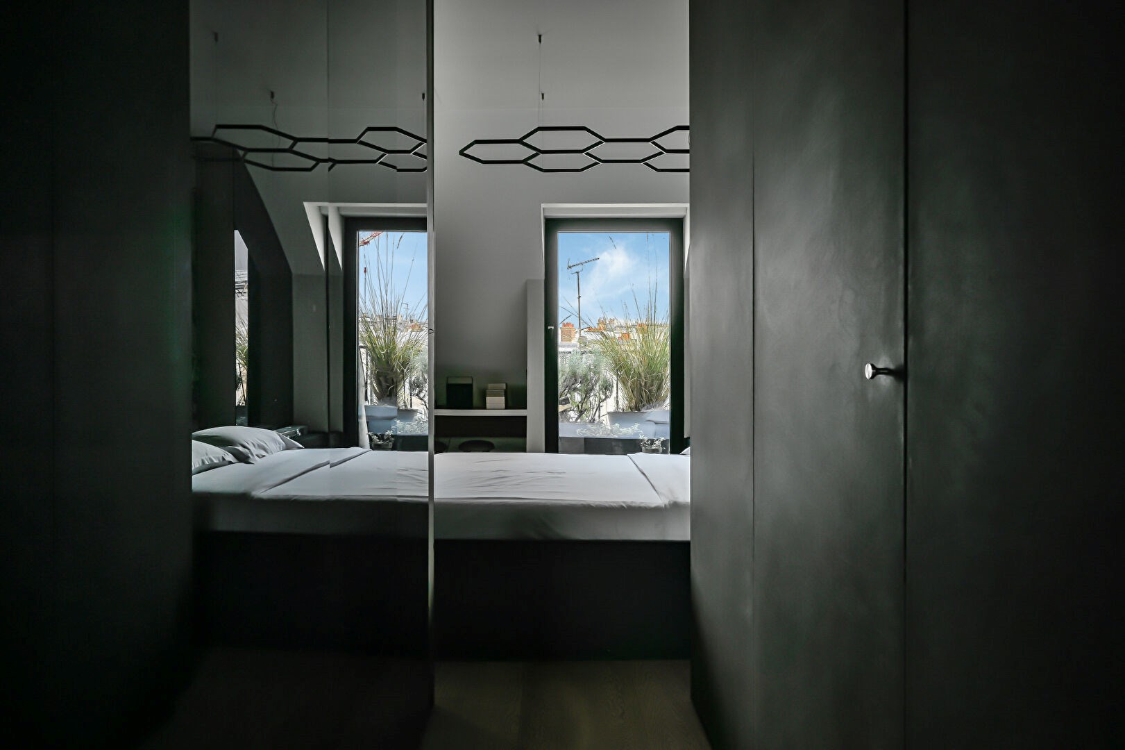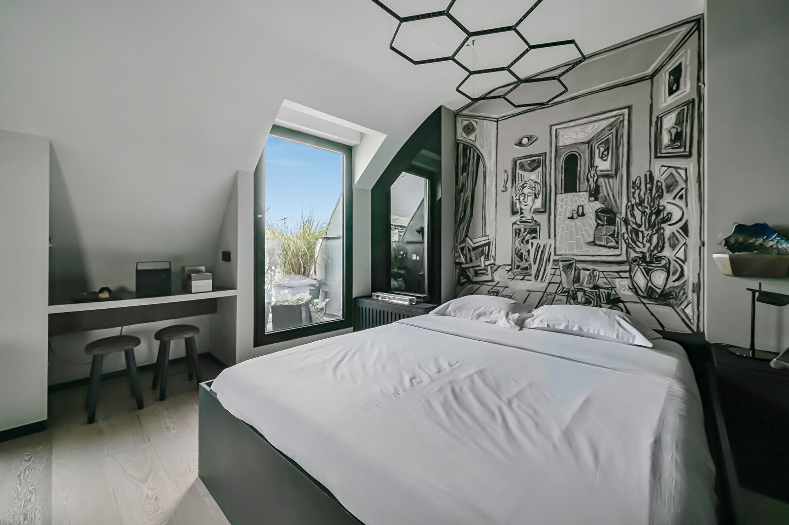Au sixième et dernier étage desservi par ascenseur, cet appartement est pensé comme une suite d'hôtel.