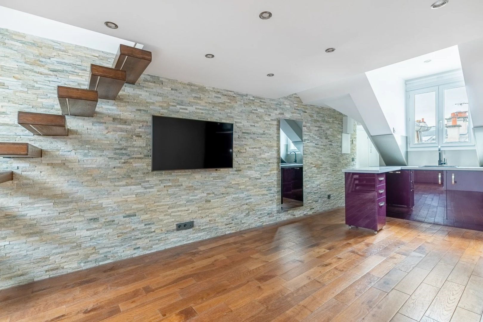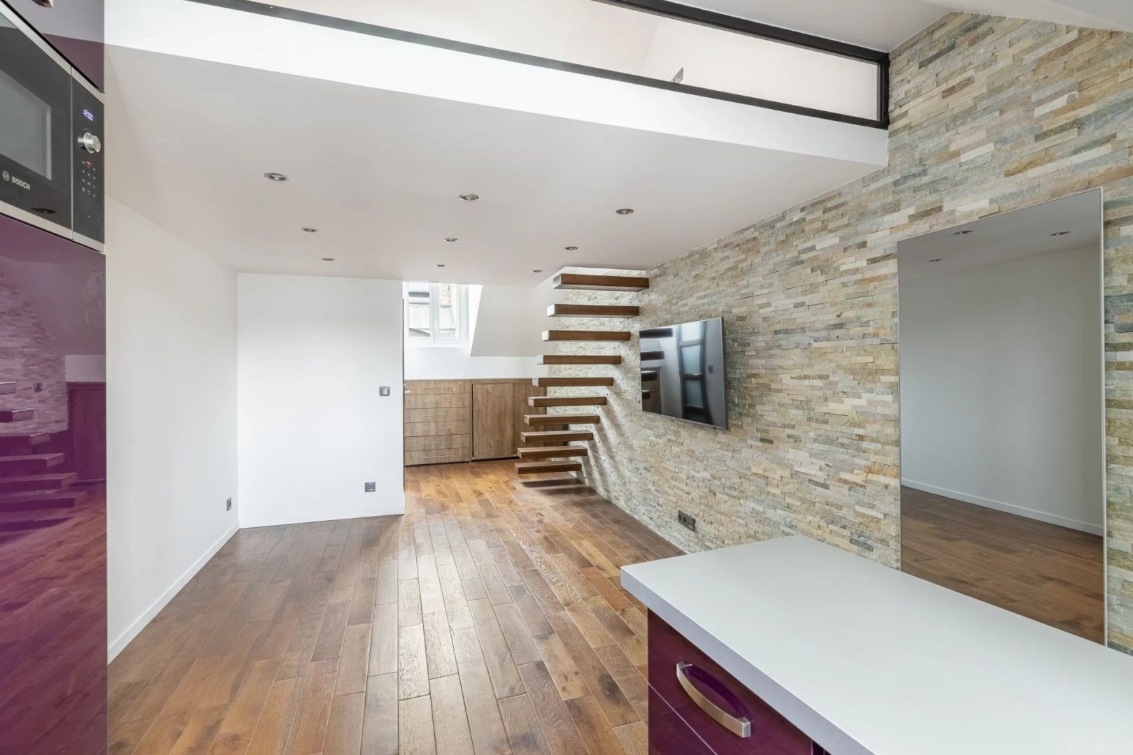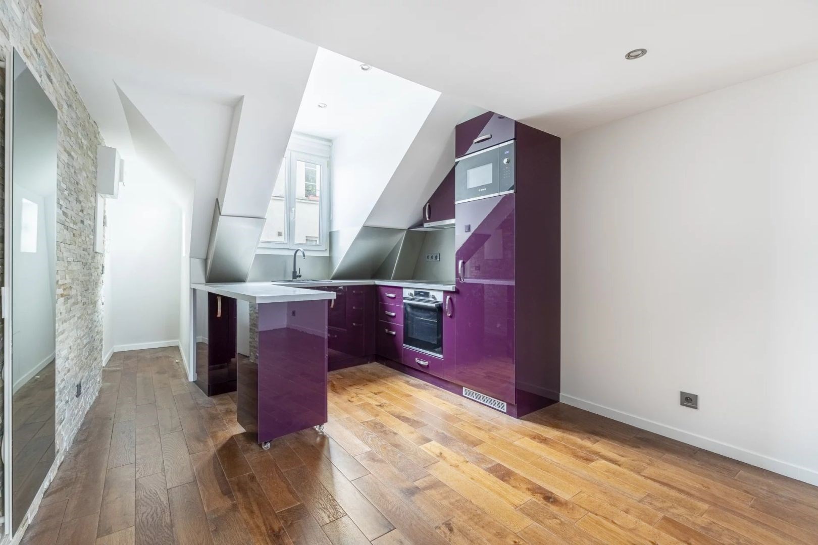 Au dernier étage, appartement entièrement rénové avec des matériaux haut de gamme et composé d'une entrée, un séjour avec cuisine ouverte entièrement équipée, une chambre et une salle d'eau avec water-closet.