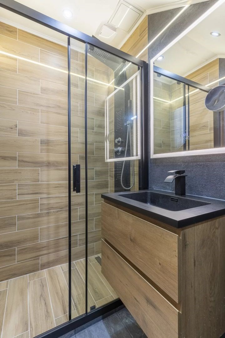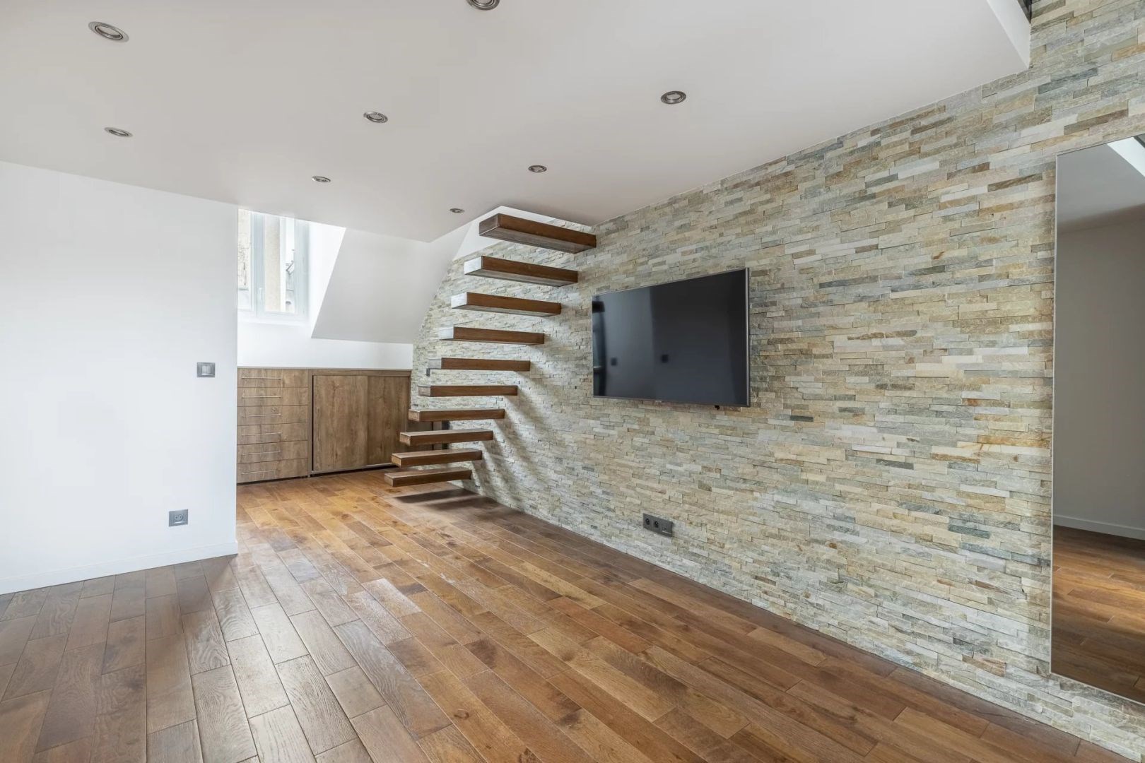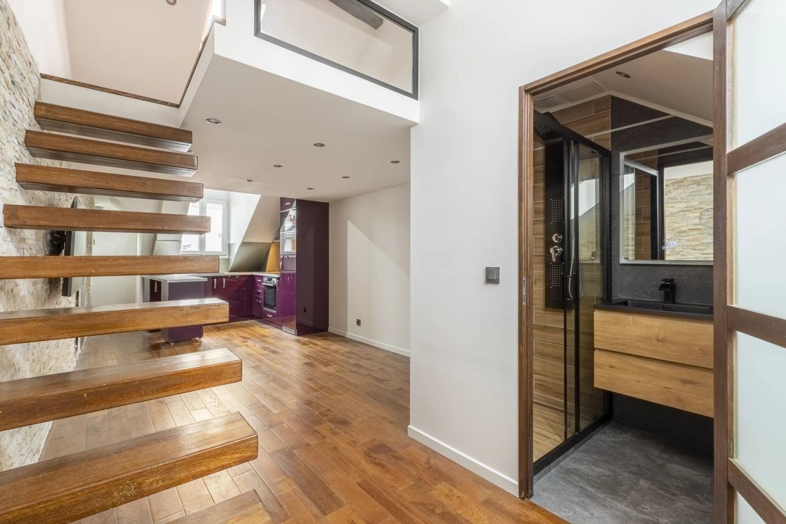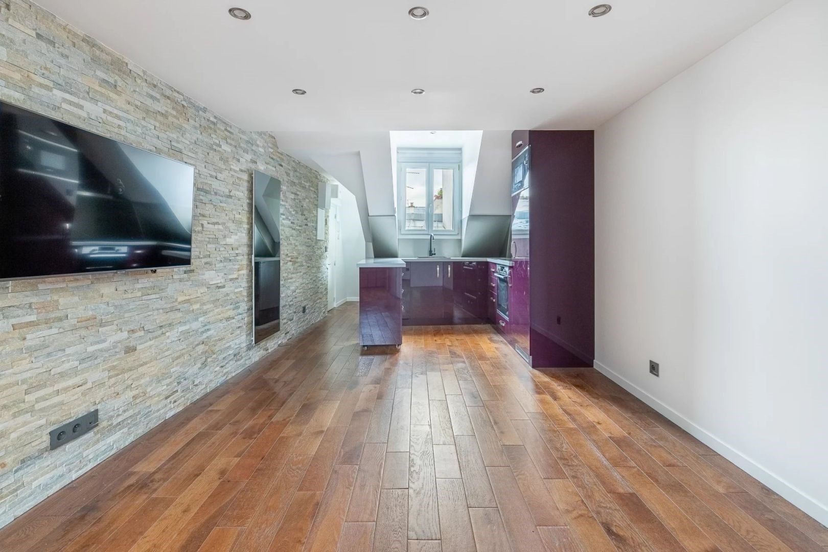 Au dernier étage, appartement entièrement rénové avec des matériaux haut de gamme et composé d'une entrée, un séjour avec cuisine ouverte entièrement équipée, une chambre et une salle d'eau avec water-closet.