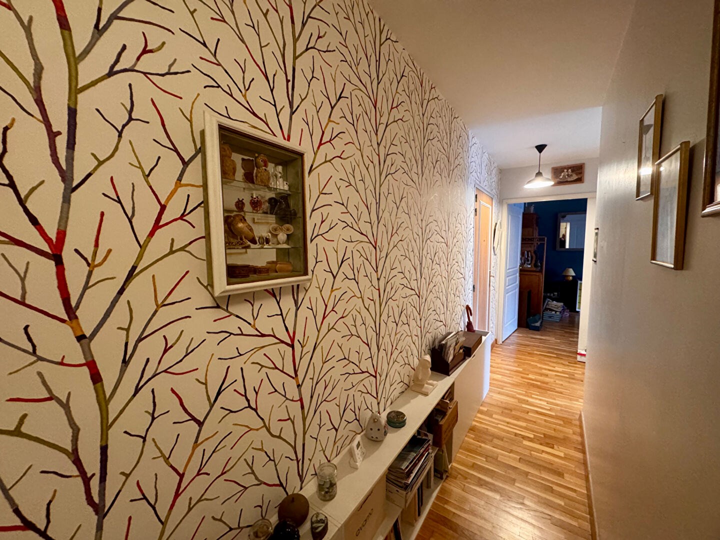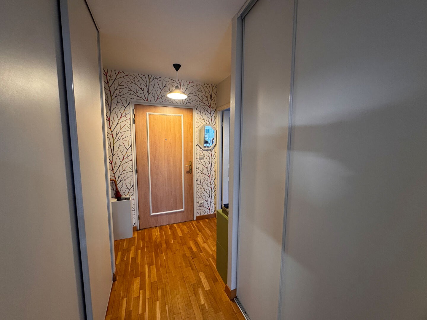 Un dégagement avec rangements intégrés offre un espace supplémentaire très pratique.