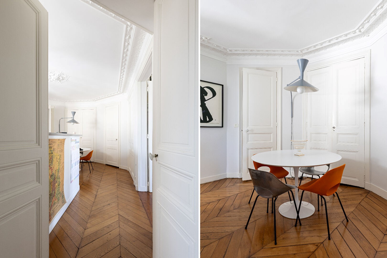 Idéalement situé au coeur du triangle Marais - Sentier - Grands Boulevards, à proximité immédiate de tous commerces, transports (métros 3, 4, 8 et 9), et établissements scolaires (école Vaucanson, collège Montgolfier), cet appartement ancien de 106m² se trouve au 5e étage avec ascenseur d'un bel immeuble haussmannien.