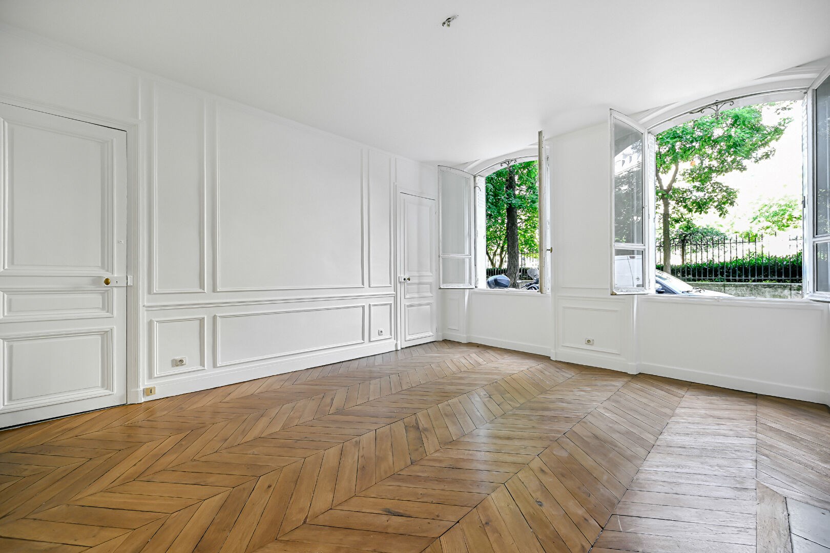 d'une belle pièce principale lumineuse avec deux grandes fenêtres sur rue,