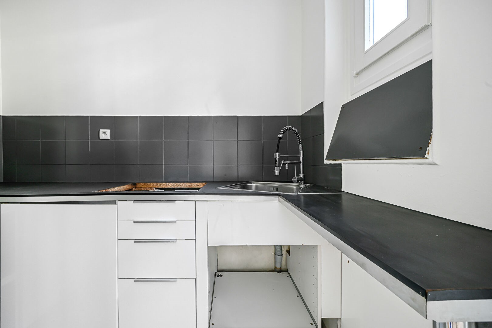 d'une cuisine équipée avec fenêtre,