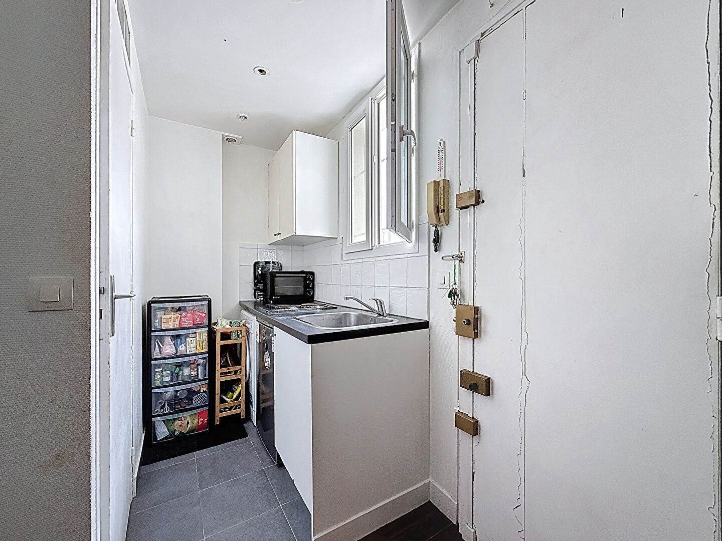 A proximité du quartier des Batignolles, à deux pas des commerces et des transports, découvrez ce studio situé rue Saint-Jean, au 5ème étage d'un bel immeuble ancien sans ascenseur.