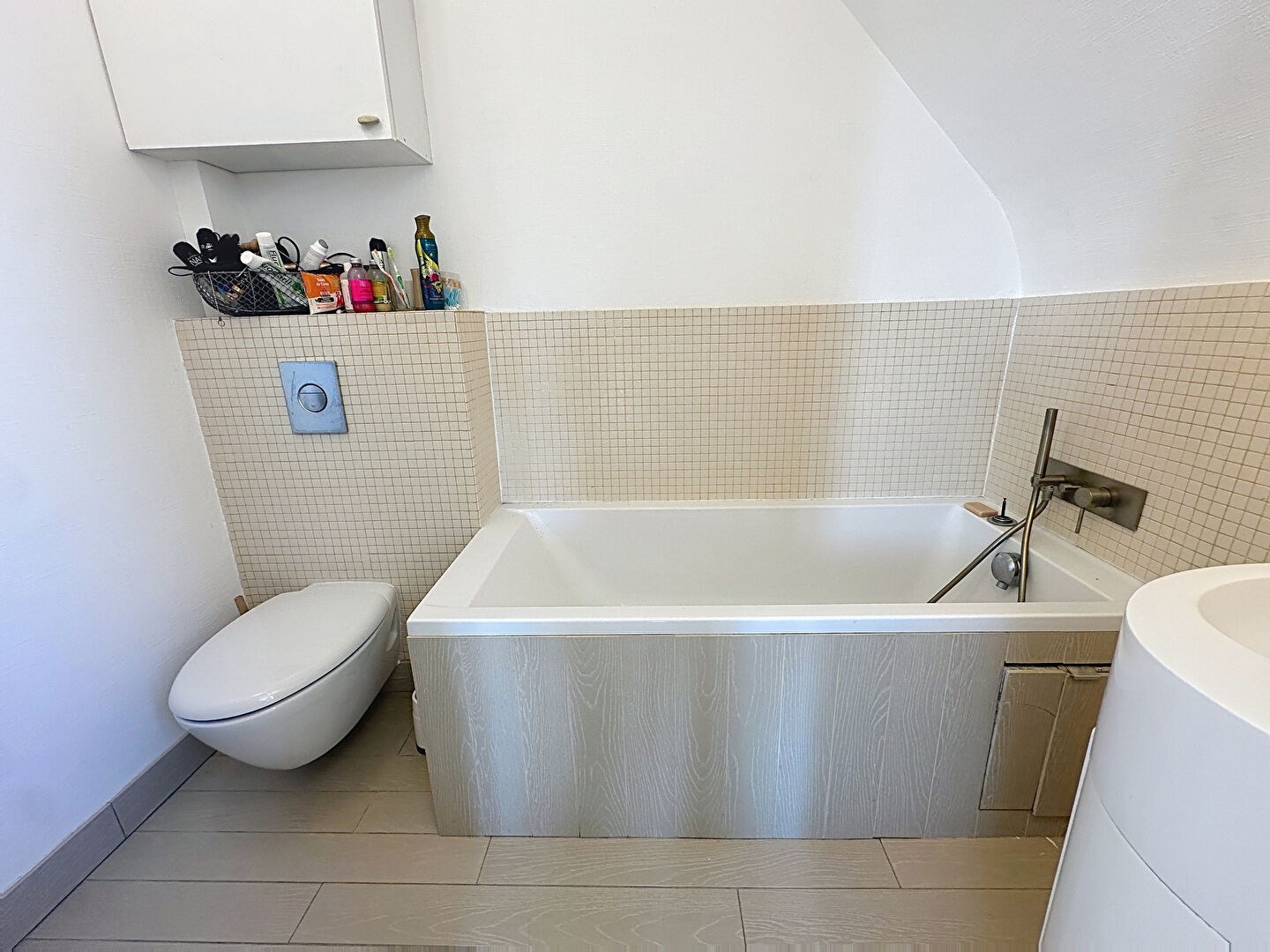 Poutres apparentes. Cave commune.