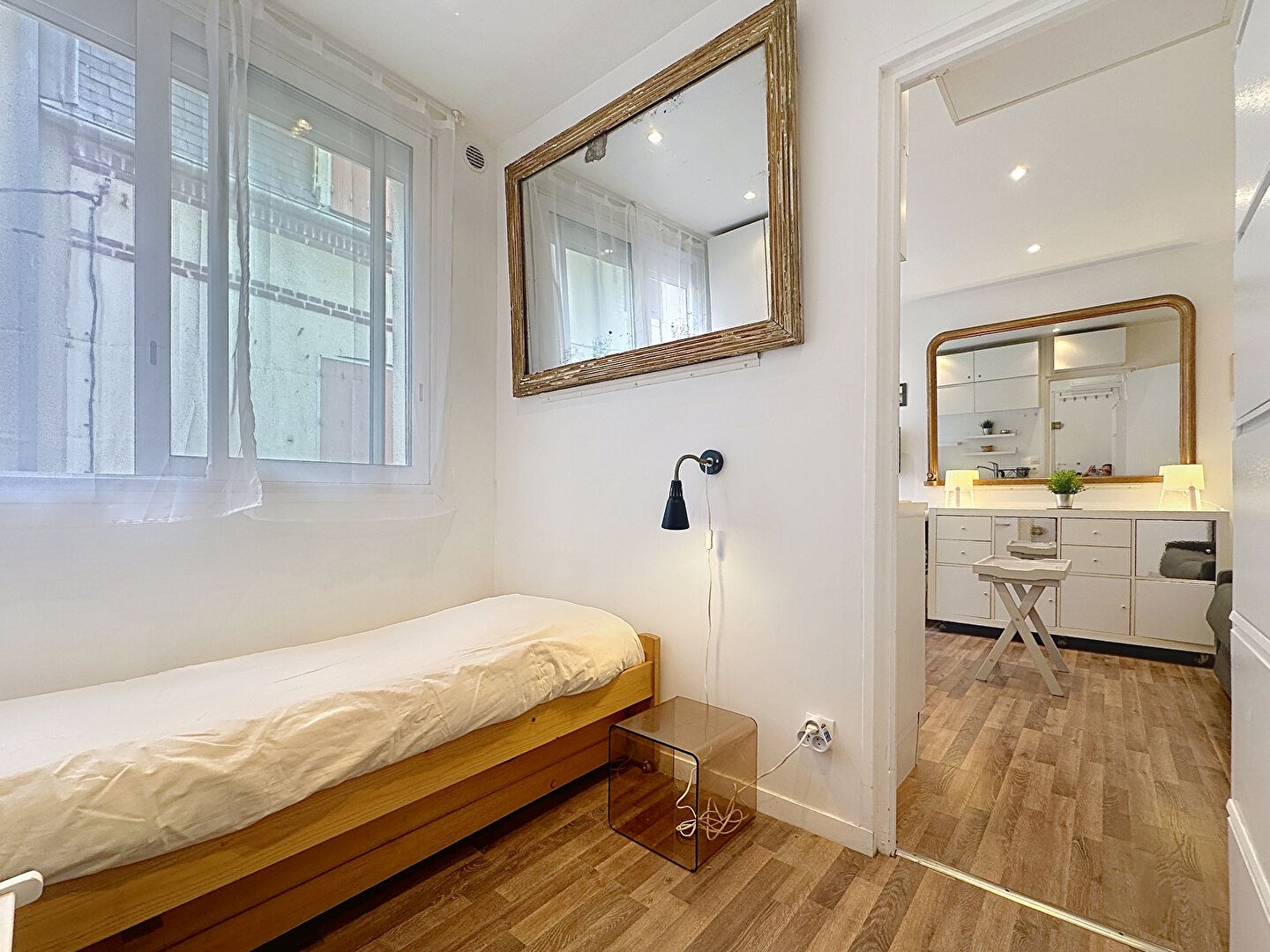Studio avec chambrette séjour avec cuisine ouverte aménagée et équipée 2 fenêtres, plein sud, salle de douches avec wc, chambrette