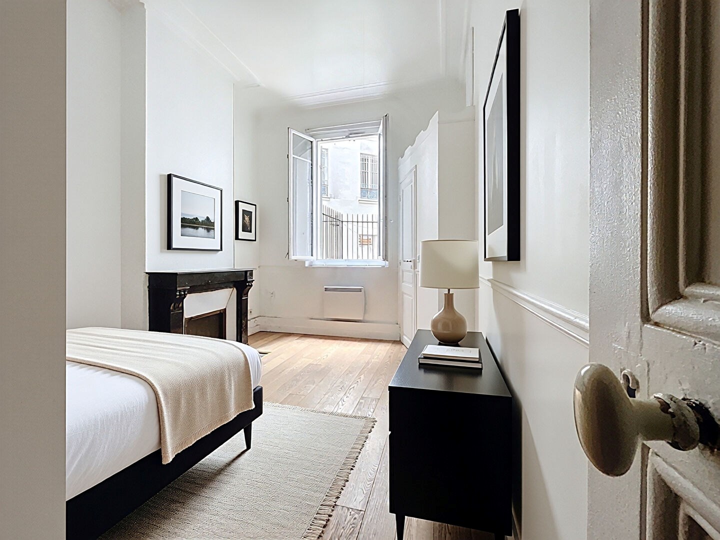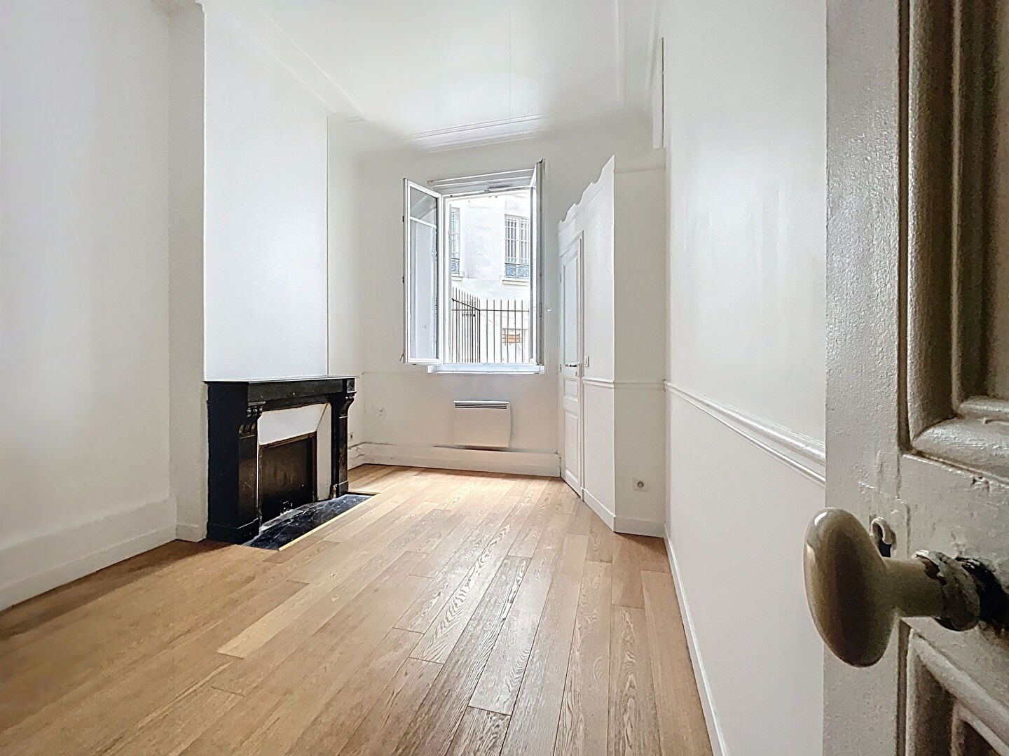 Un appartement aux très jolis volumes comprenant : entrée, grande réception donnant sur rue ouvrant sur une cuisine séparée et équipée, une vaste chambre à coucher donnant sur cour, une salle d'eau avec wc.