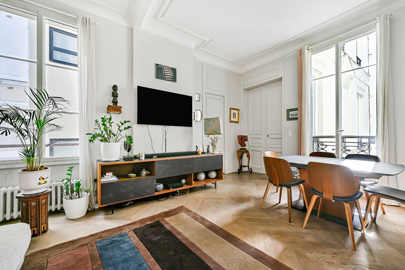 Appartement de standing d'environ 90 m2 de quatre pièces situé au 2ème étage d'un immeuble haussmannien.