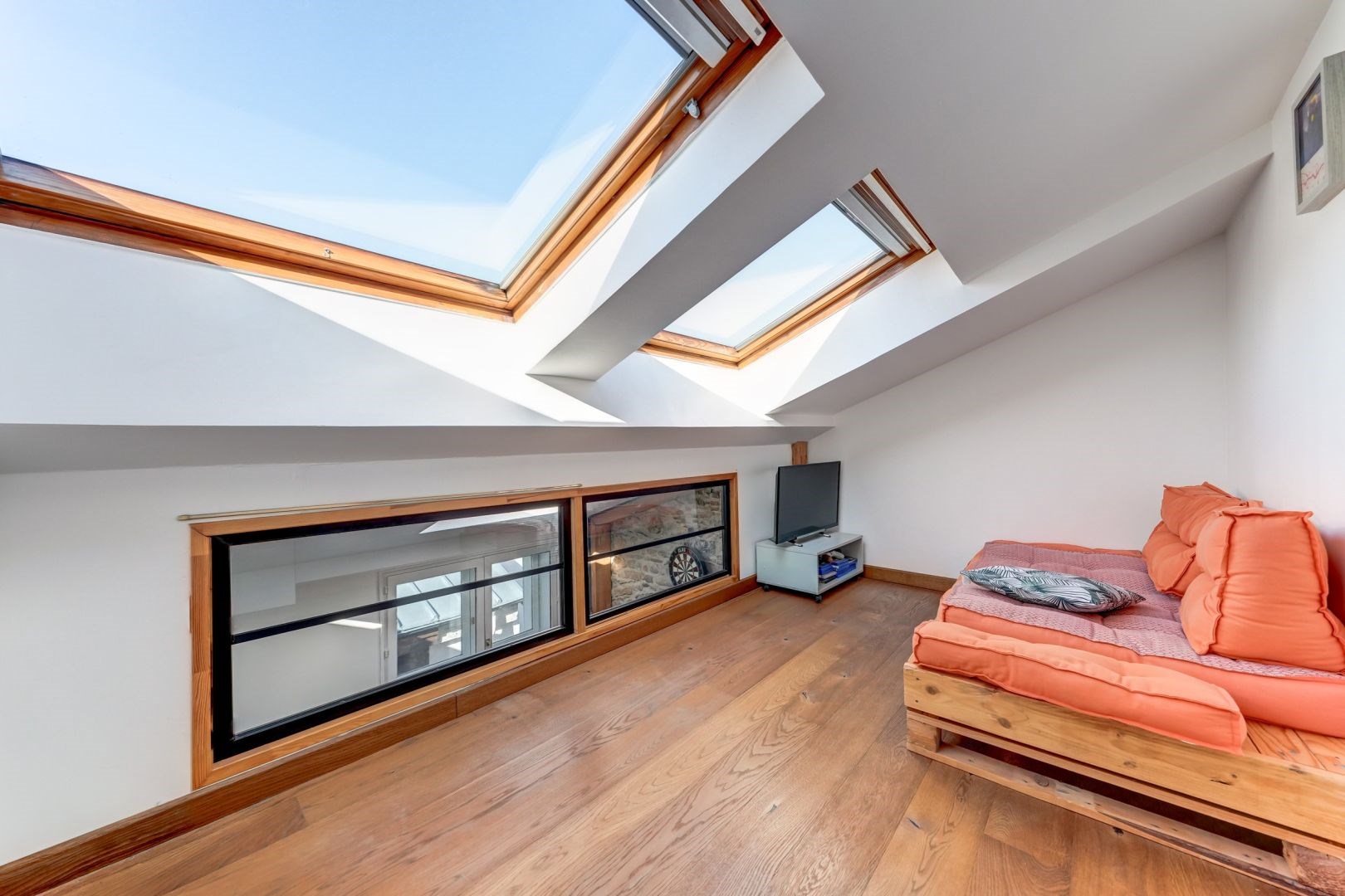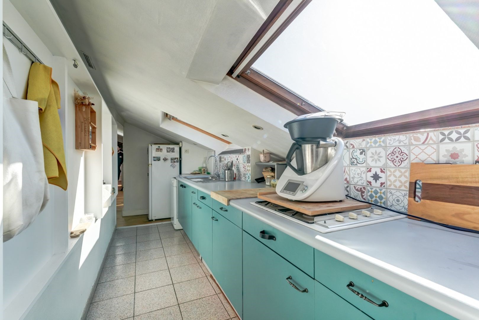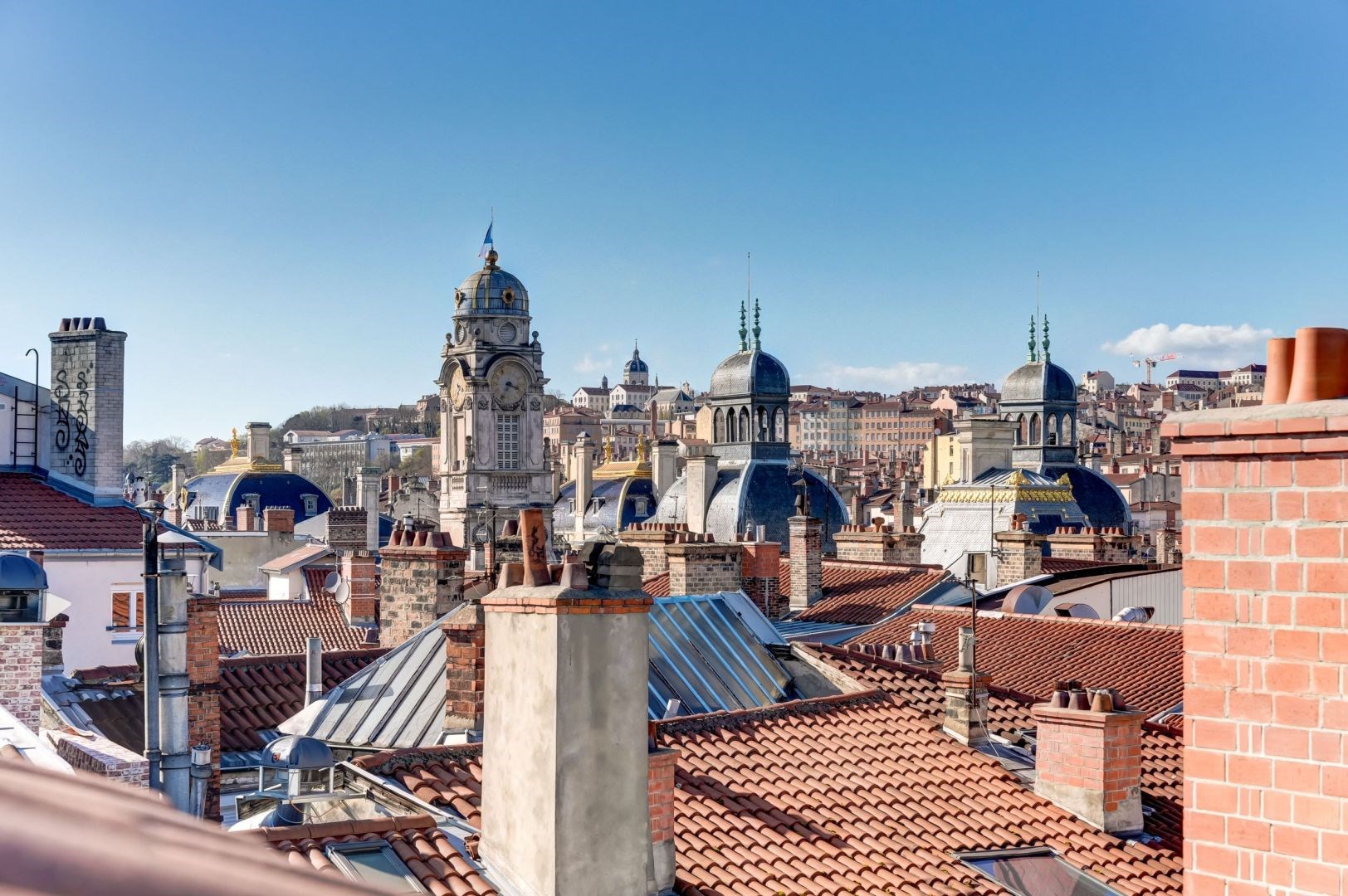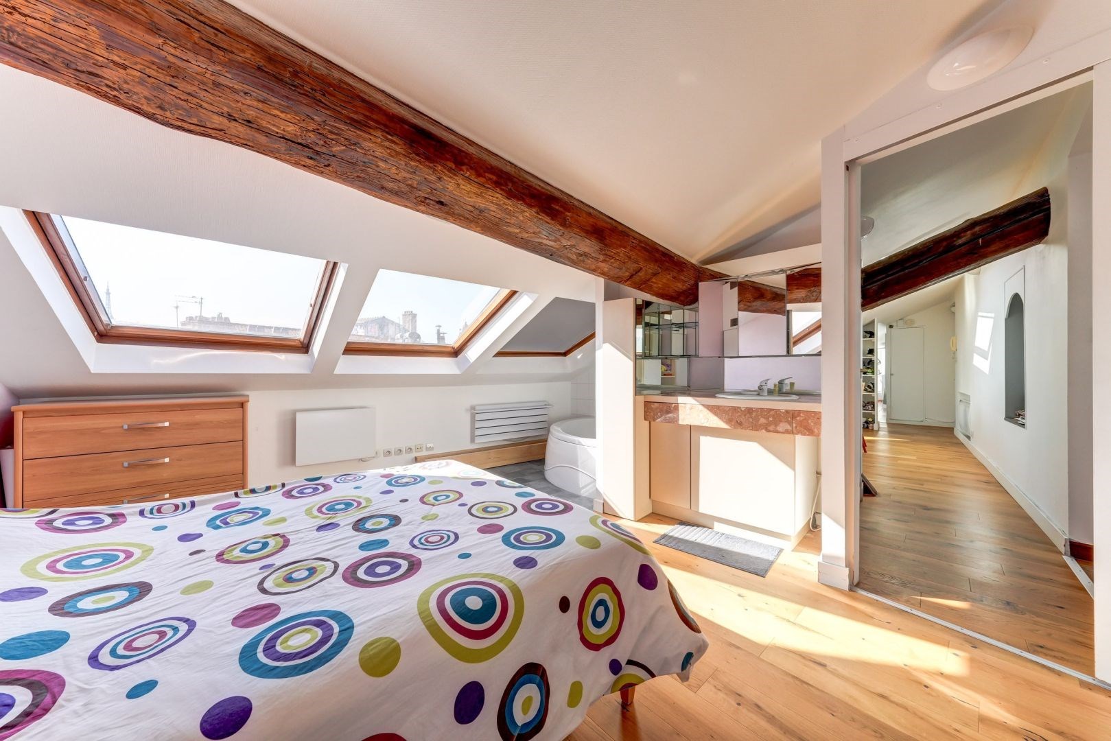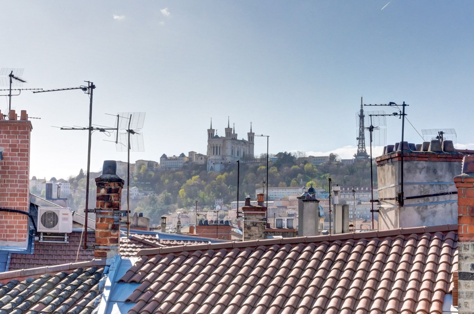 LYON 1ER OPERA. Niché au 6ème et dernier étage avec ascenseur, cet appartement de 74m² total et 34,86m² carrez saura séduire les amateurs d'atypisme. Il se compose d'une salle à manger, d'une cuisine indépendante, d'un salon avec coin couchage ou bureau en mezzanine, d'une chambre avec sa propre salle de bain, d'une salle d'eau indépendante et d'un WC séparé. Une vue sur les toits de Lyon, Fourvière et l'Opéra, le calme absolu et la luminosité sont les atouts de cet appartement. Au pied du métro A station Hôtel de Ville.