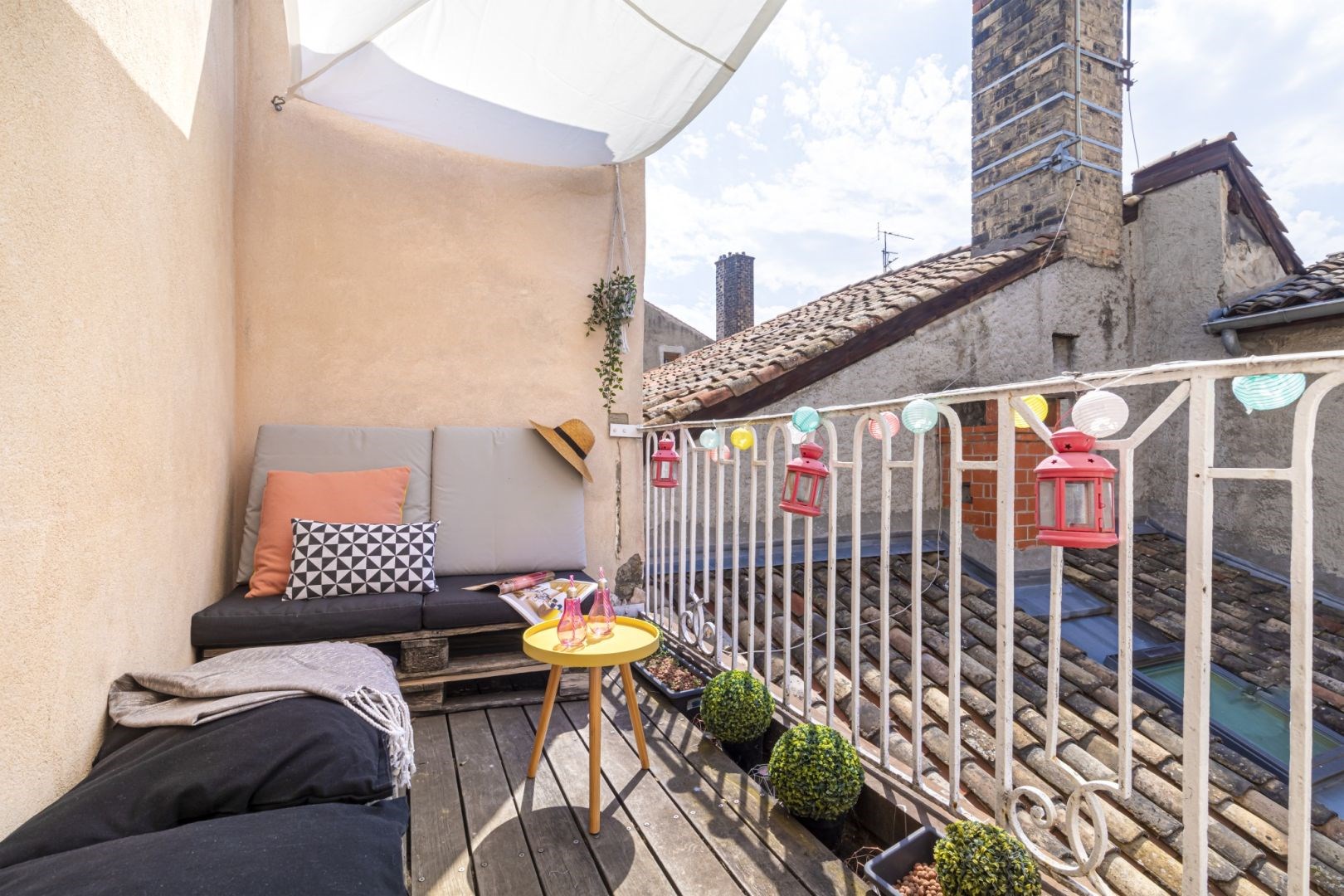 LYON 5ème VIEUX LYON : Rare ! Au calme total, niché au 4ème et dernier étage d'un bel immeuble Renaissance, nous vous proposons un très agréable appartement de type 2 avec terrasse ! Donnant au SUD sur les toits, cet appartement en très bon état bénéficie d'une spacieuse pièce à vivre (séjour et cuisine US) ouvrant sur la terrasse, d'une chambre à l'étage, d'une salle de bains et WC séparé. Il est idéal pour un premier achat.