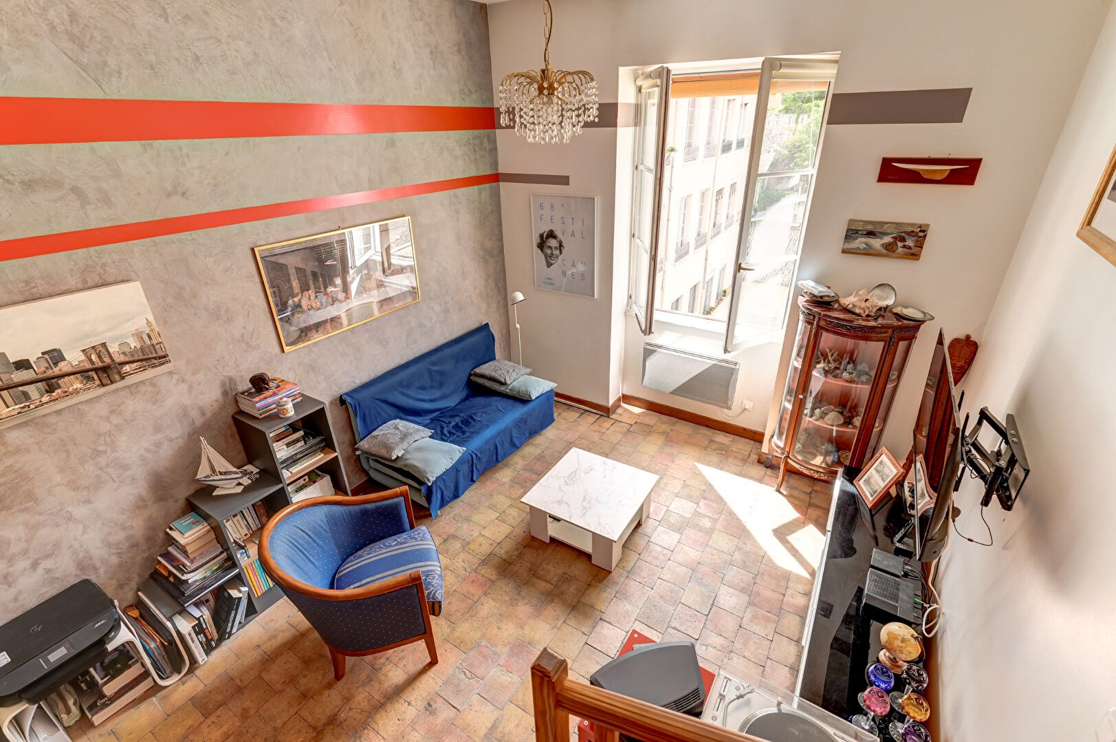 Lyon 1er. Situé entre le jardin des Chartreux et la Fresque des Lyonnais, venez découvrir cet appartement T2 en duplex de 47,68m² carrez et 68m² total aux 3ème et 4ème étages d'un immeuble ancien. Au rez-de-chaussée, un hall d'entrée, une cuisine ouverte sur le séjour et une salle d'eau avec WC. A l'étage, une chambre avec espace bureau et un WC séparé. L'appartement est habitable sans travaux.