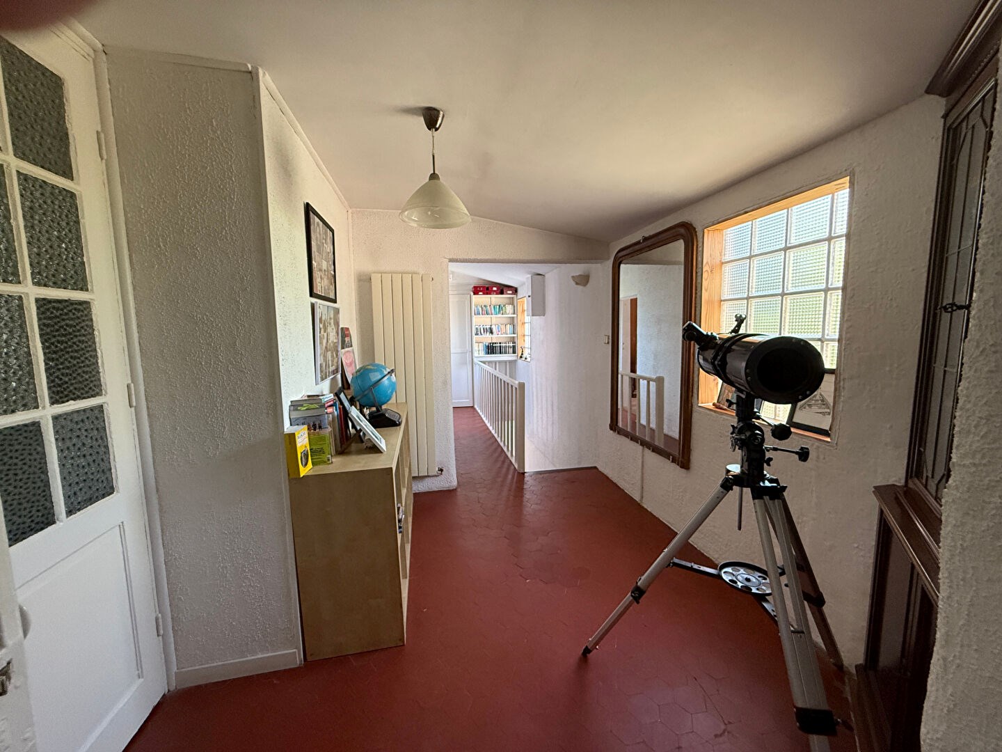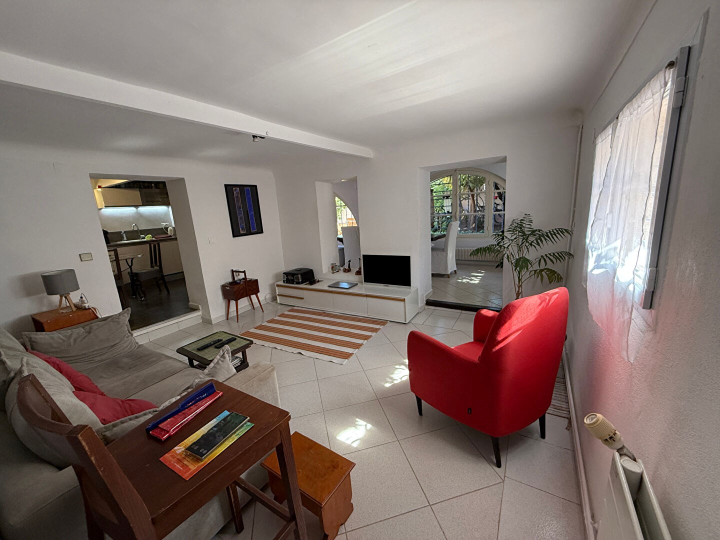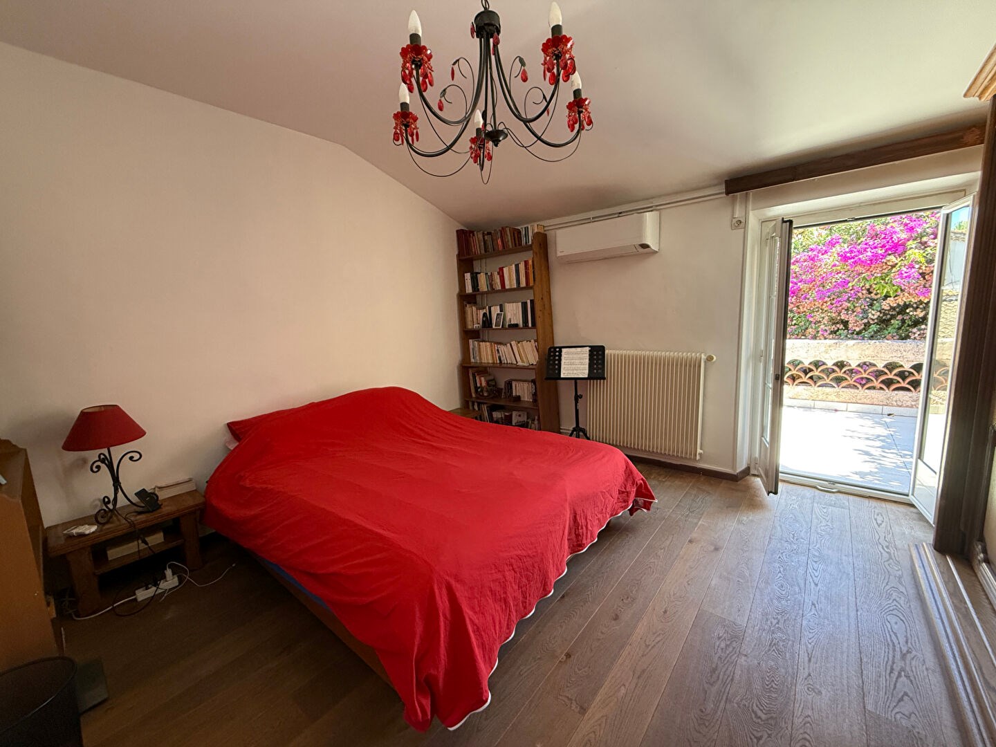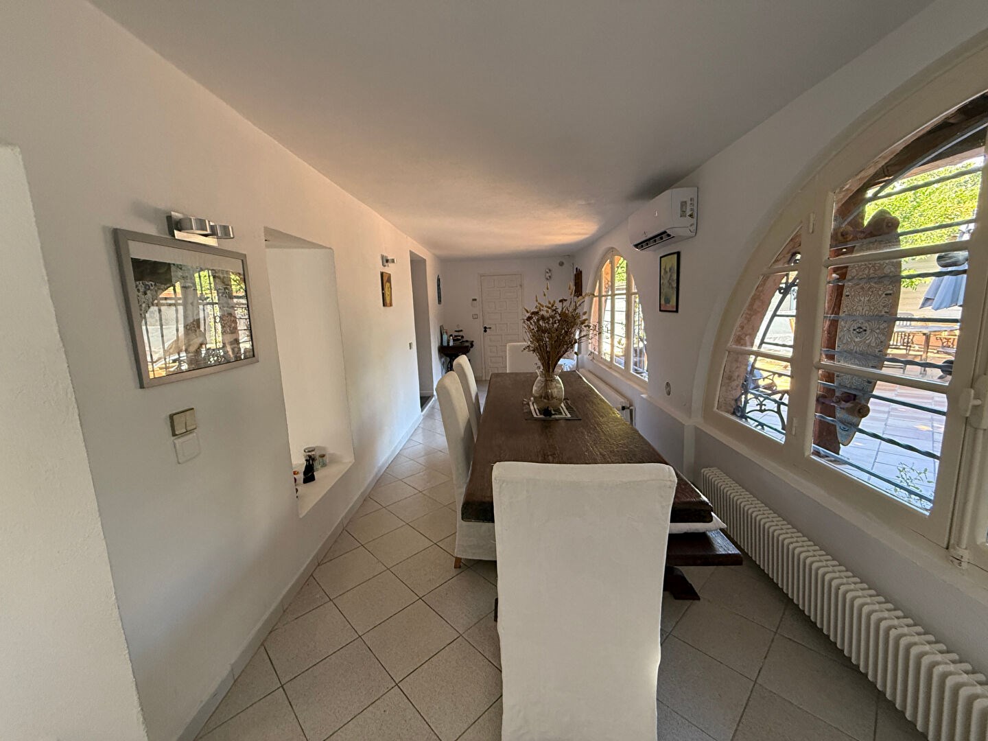 Au pied de la maison, une terrasse de 100m² arborée et aménagée comme un patio espagnol vous donnera la possibilité de recevoir vos convives dans une atmosphère paisible.