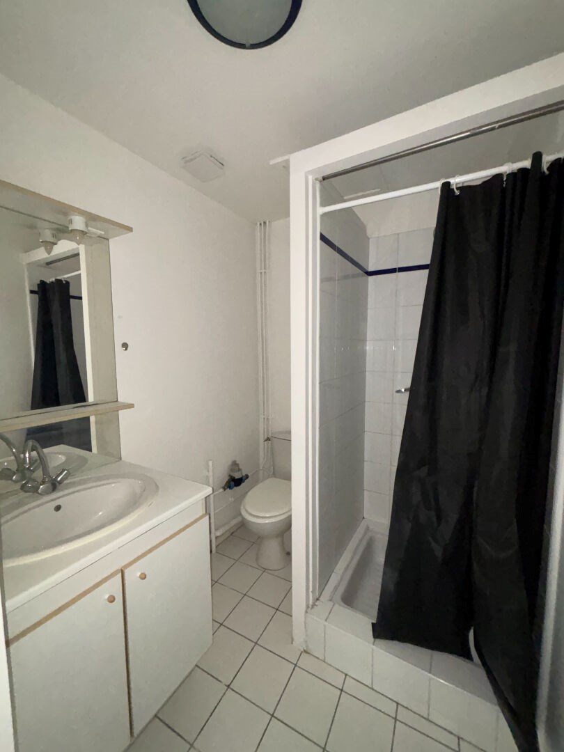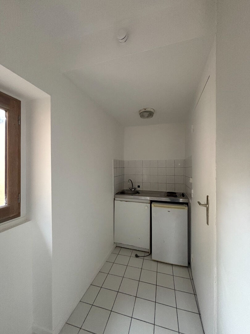Appartement F1 de 16.83m² au 4ème et dernier étage sans ascenseur, comprenant une pièce de vie, une cuisine équipée (plaques gaz et frigo top), une salle d'eau avec WC.