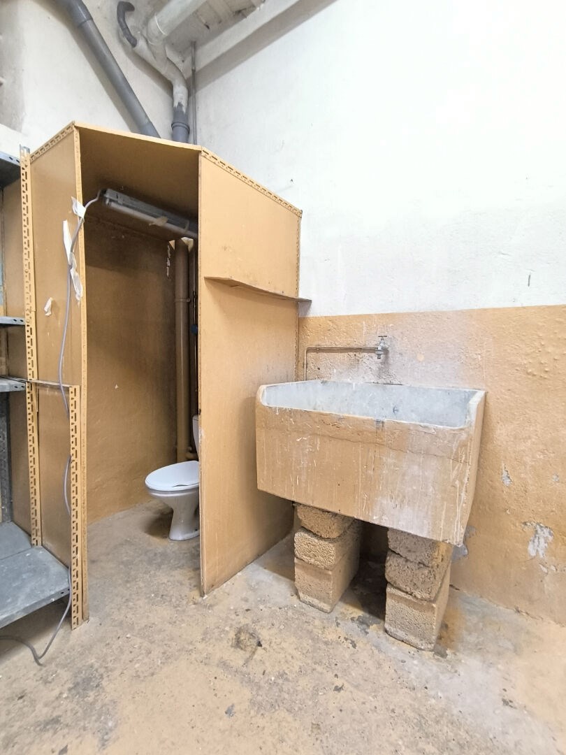 Il est équipé d'électricité, d'eau froide, d'un toilette et évier, d'un bureau et d'une partie entrepôt.