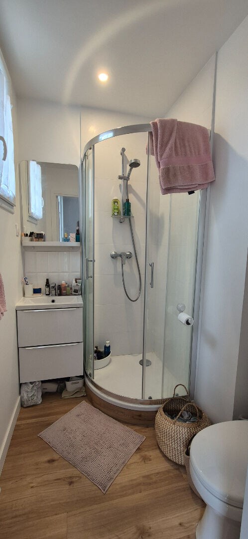 Composé d'une entrée avec rangements, une pièce de vie avec cuisine ouverte et une salle d'eau avec WC.