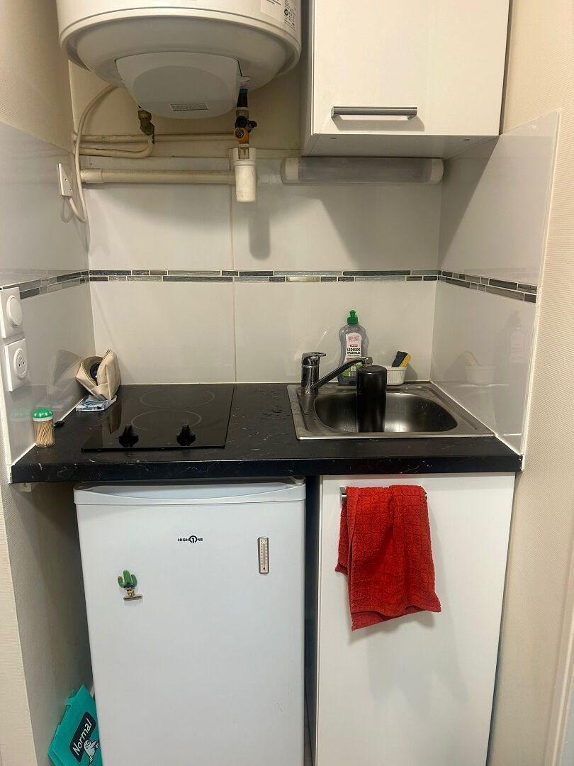 Studio composé comme suit : entrée avec coin cuisine aménagée et équipée, placard, pièce principale, salle d'eau avec W.C.