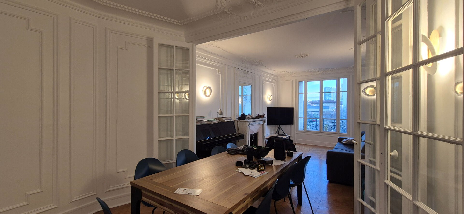 Il est composé d'une entrée, un double séjour, une cuisine, trois chambres, une salle de bains des WC séparés.