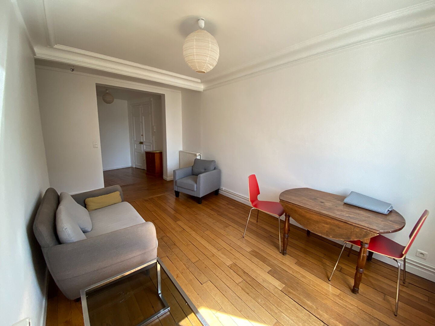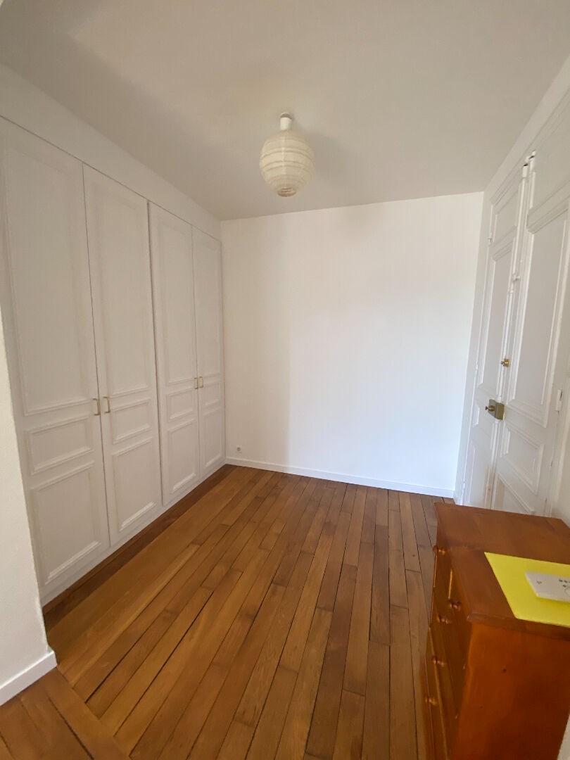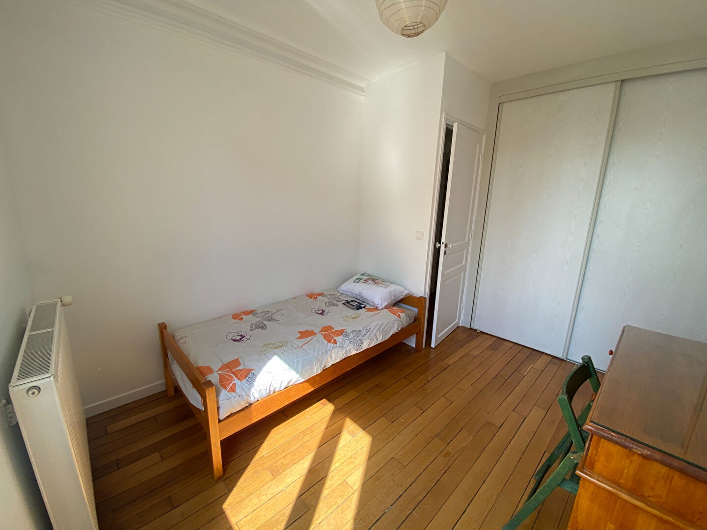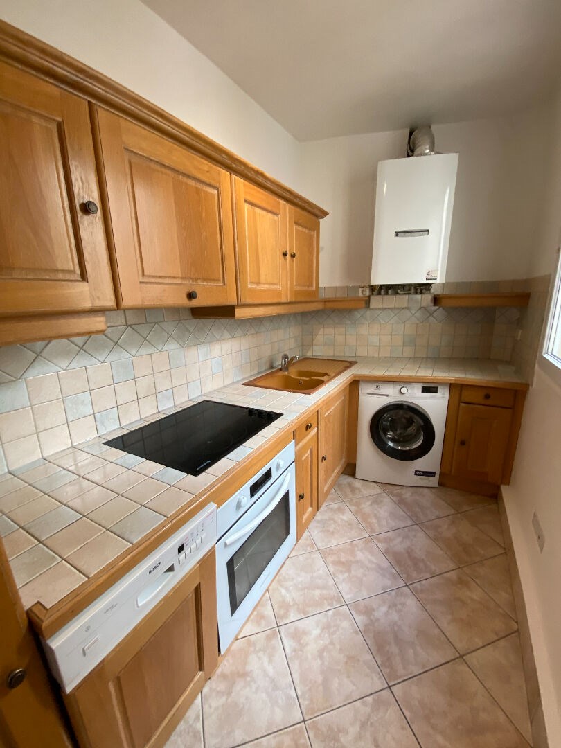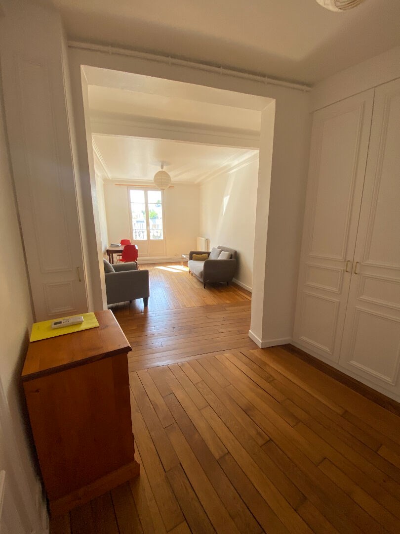 Un appartement comprenant une entrée avec rangement intégrés, un séjour, une cuisine séparée et équipée, deux rangements, deux chambres dont une avec placard intégré, une salle d'eau avec WC.